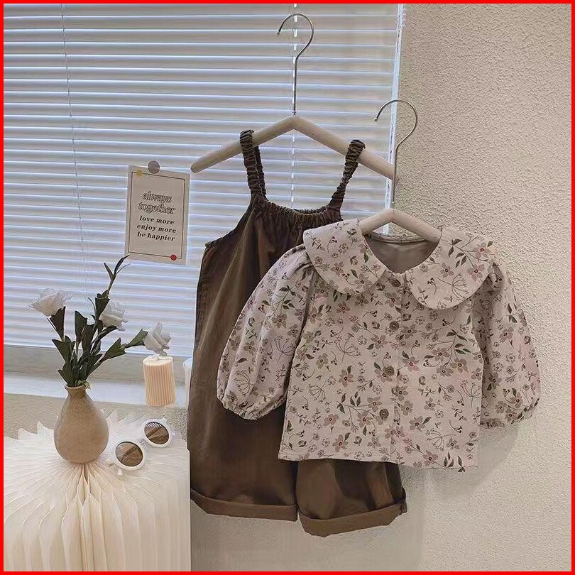 Terbaru Setelan Anak Perempuan Kemeja Motif Bunga Celana Panjang Overall Setelan Mains Anak Perempuan Fashion Terbaru Se