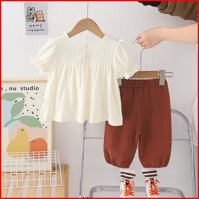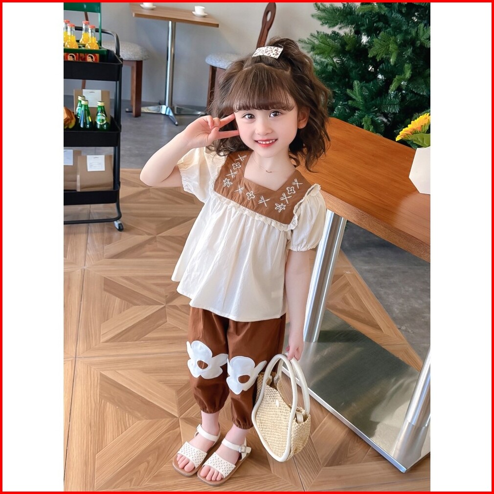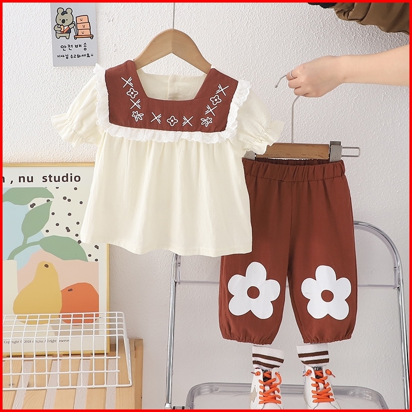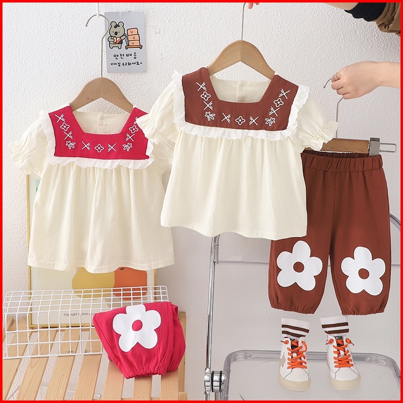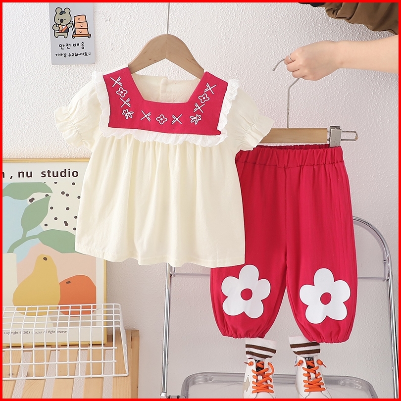 Kidsmains Setelan Baju Anak Perempuan Lengan Pendek Premium Katun Casual Style Motif Bunga Usia1-4th