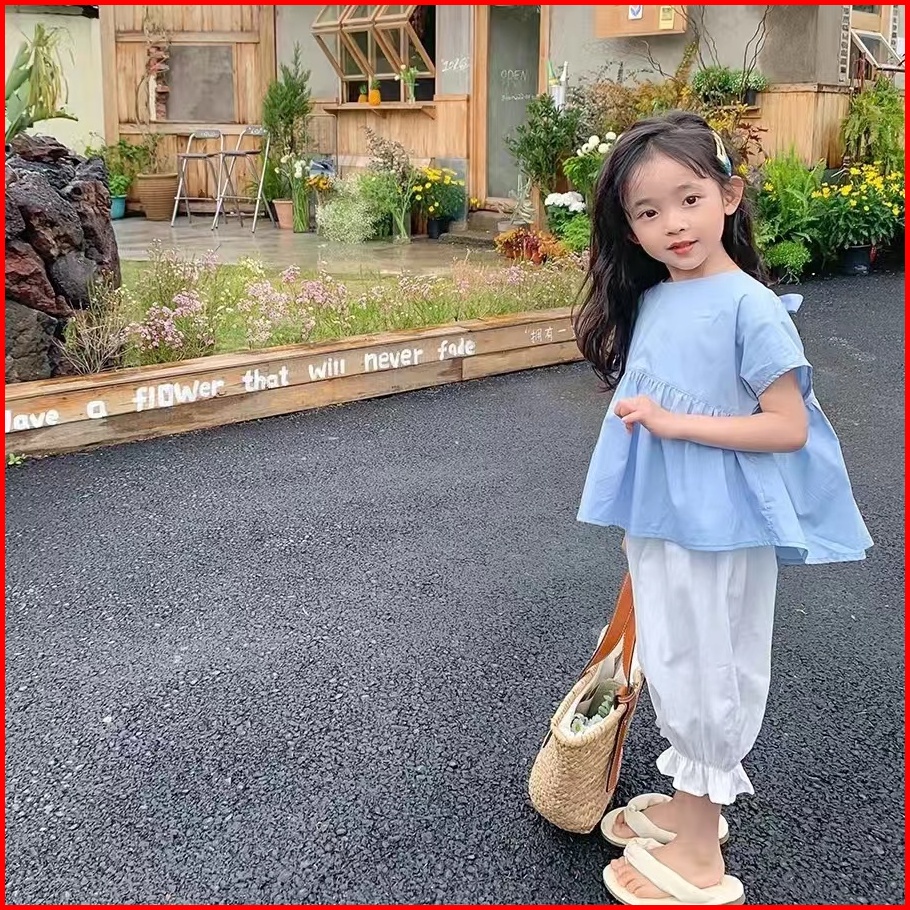 Makabaka Premium Murah Kualitas Import Terbaru Setelan Anak Perempua Set Mains Atasan Lengan Pendek Celana Panjang Baju
