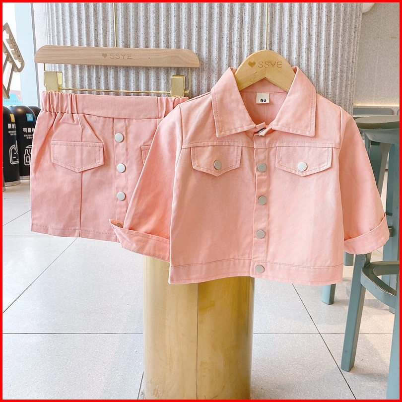 Setelan Baju Lengan Panjang Rok Anak Perempuan Korea Style Jaket Denim Anak Cewek