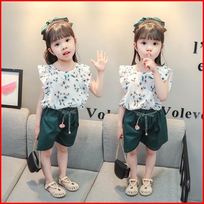 Setelan Anak Perempuan Import Ala Korea Motif Bunga