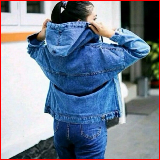Jaket Jeans Hoodie Wanita Jacket Hodie Oversize Denim