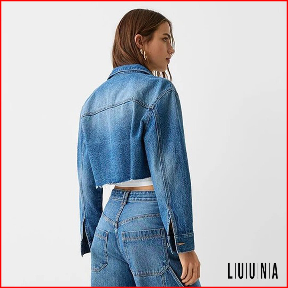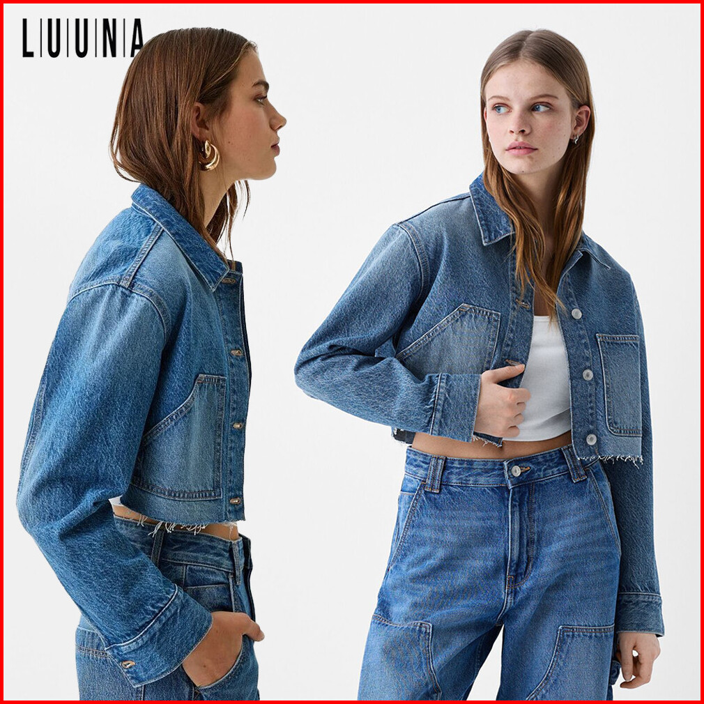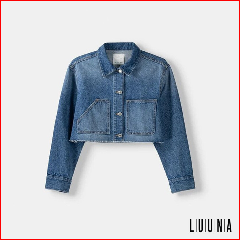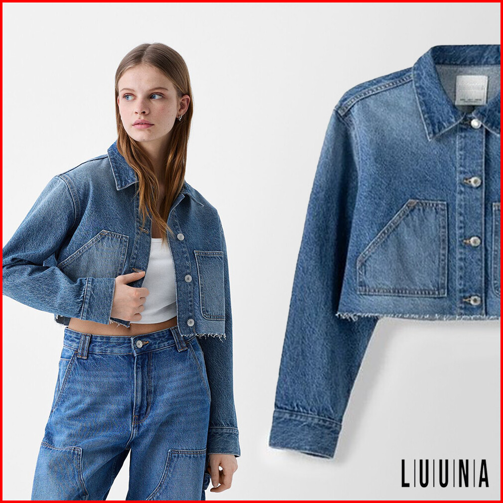Jaket Jeans Wanita Bershkka Workwear Denim Jacket