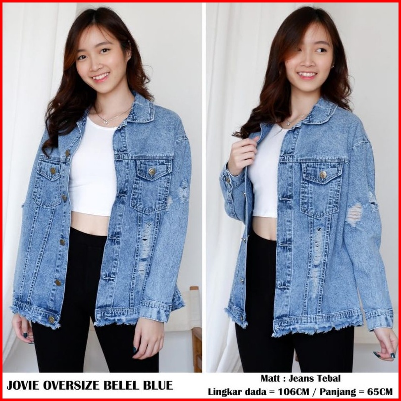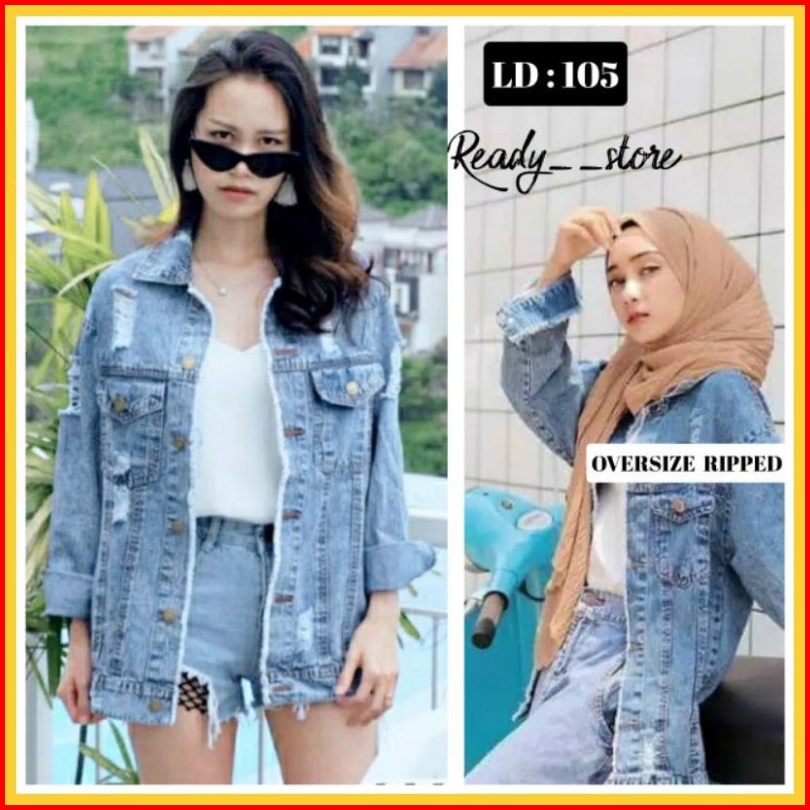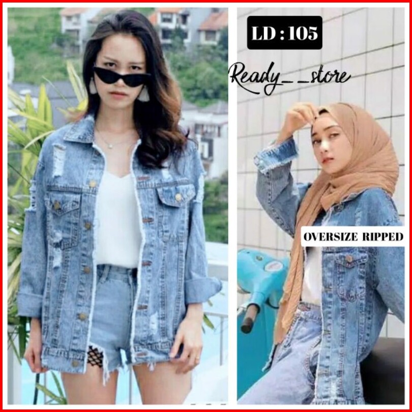Ld 105-110cm Jaket Jeans Wanita Oversize Ripped Kekinian Xl Murah Cewe Cewek Terbaru 2021 Dewasa Snow Acid