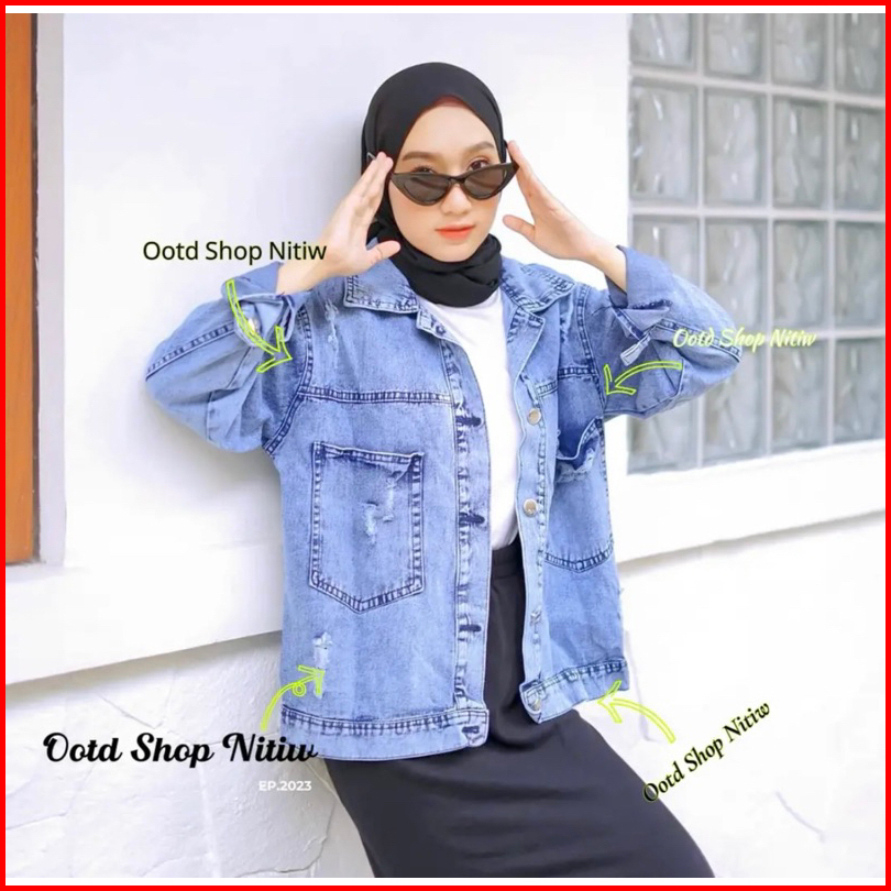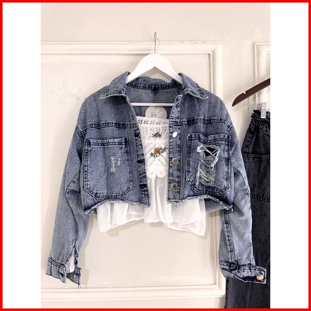 Ootd - Jaket Jeans Ripped Crop Jaket Jeans Ripped Oversize