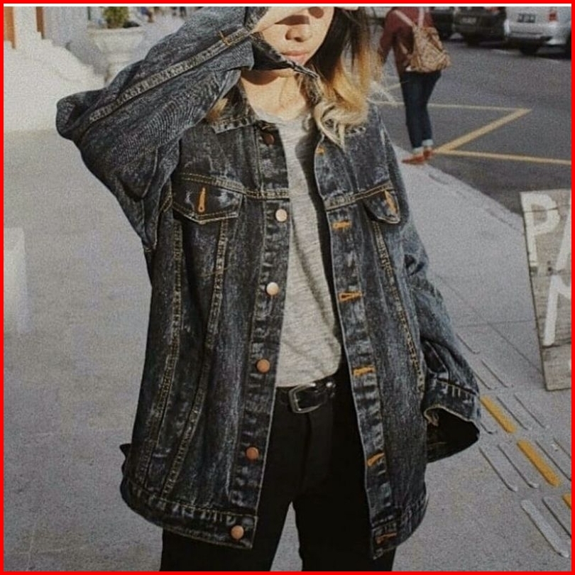 Hicoo Jaket Jeans Wanita Snow Jumbo Oversize Premium