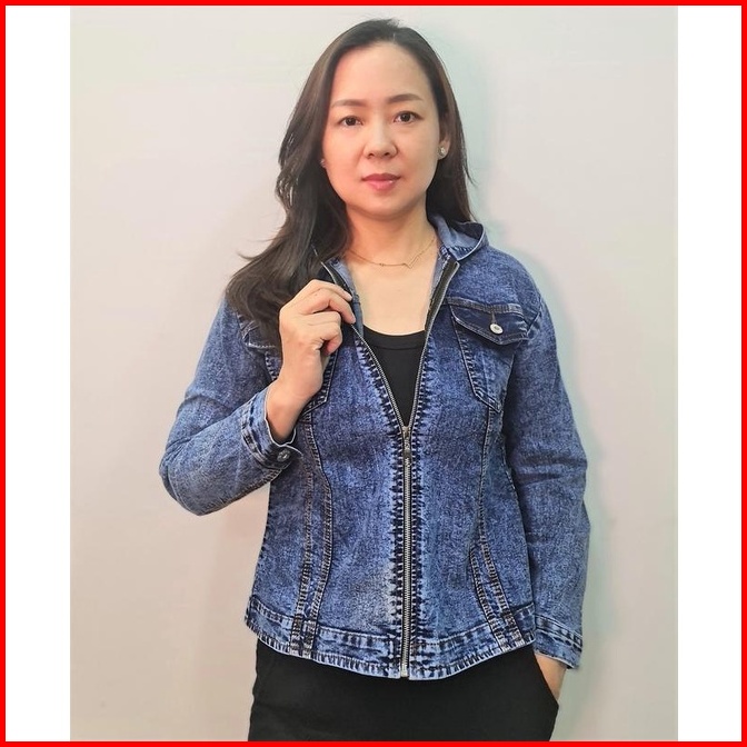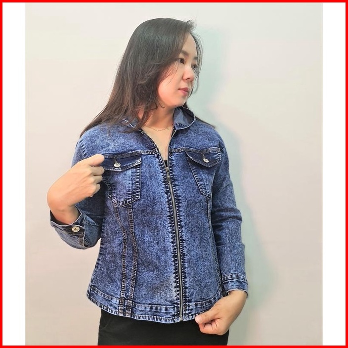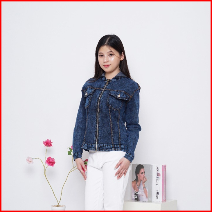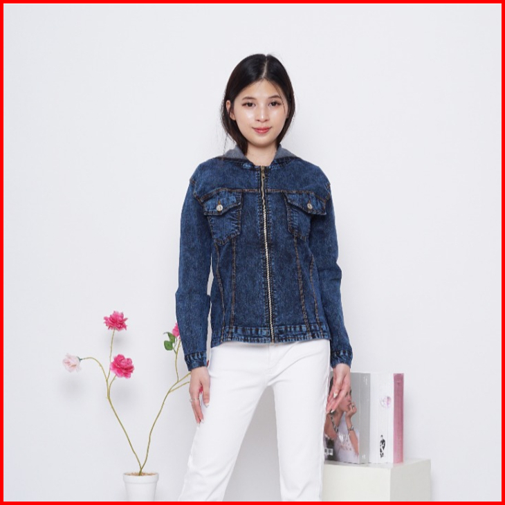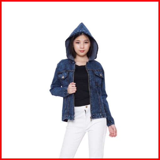Minola Jaket Jeans Wanita Hoodie Lanie Denim Resleting Cewe Kekinian