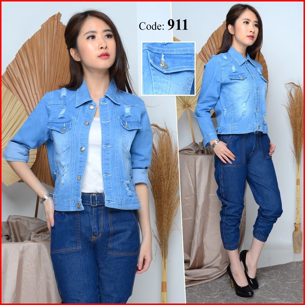Mc Girl Jaket Jeans Sobek Wanita Jaket Lepis Ripped Cewek