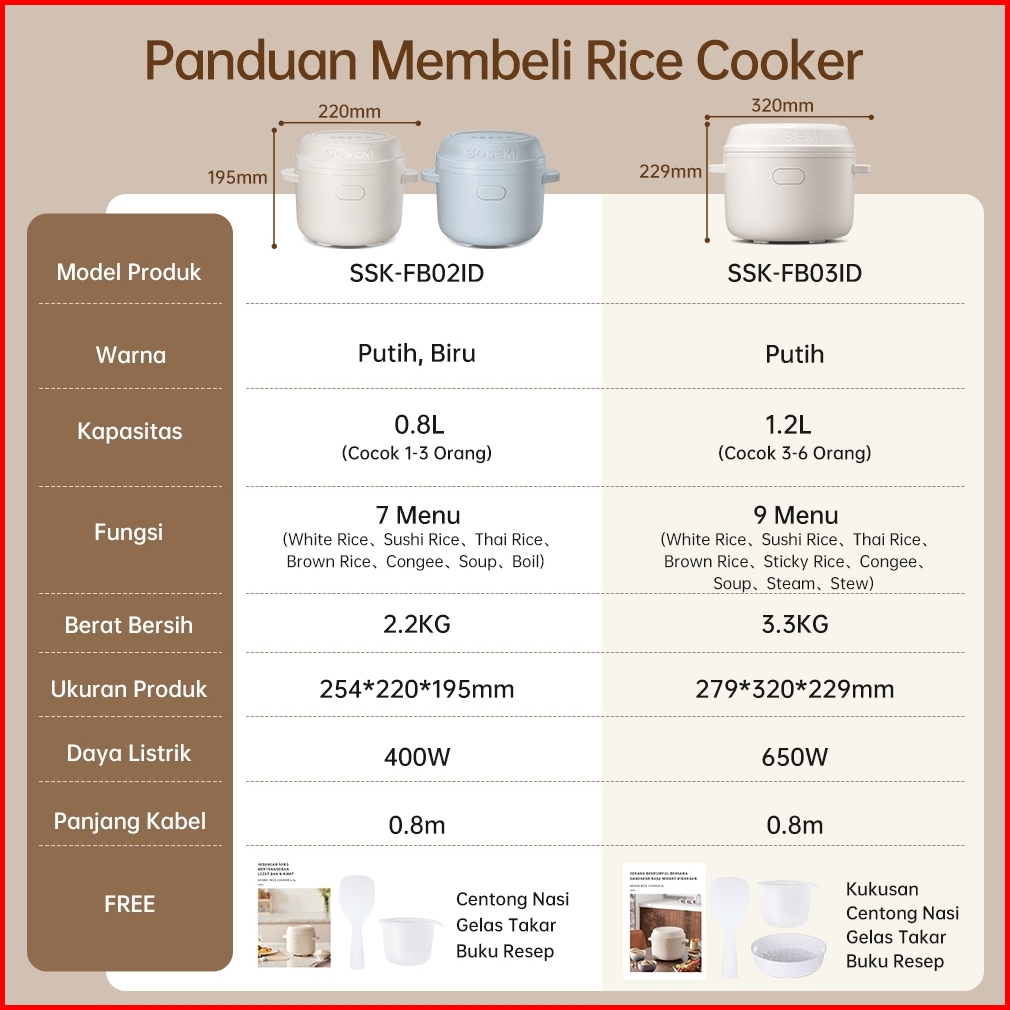 Soseki Multifungsi Rice Cooker 0.8-1.2liter 7-9 Menu Magic Com Pertebal 3mm Anti Lengket Mejikom