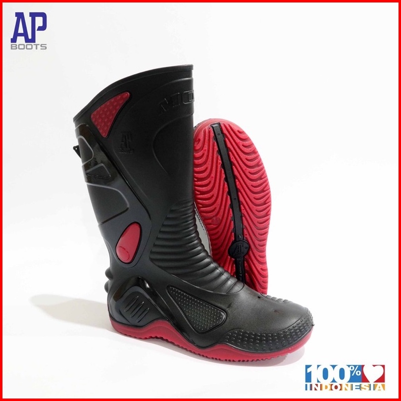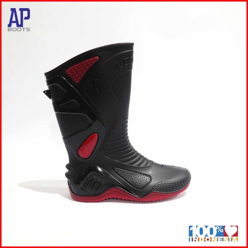 Sepatu Boot Bikers Moto 2 Black Red Hitam Merah