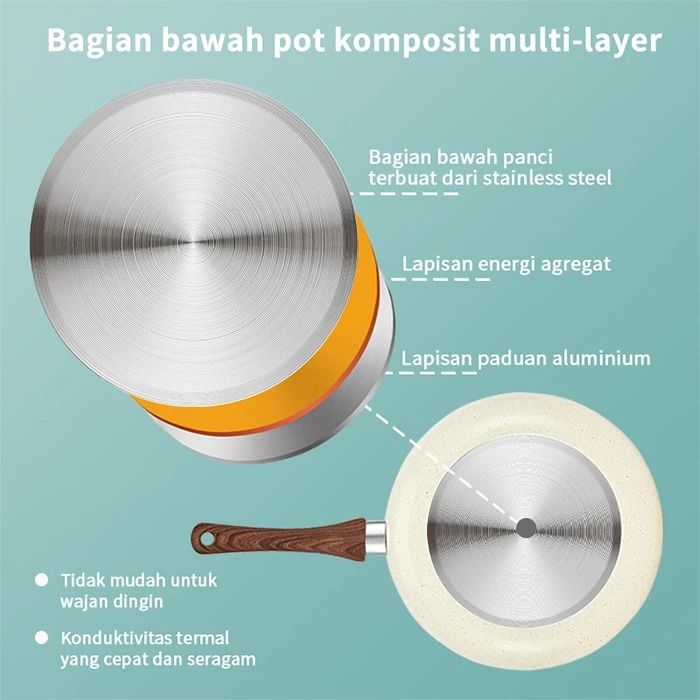 GM Bear Wajan Penggorengan Marble Coating 20cm (Beige) 1812 / wajan anti lengket / wajan stainless steel