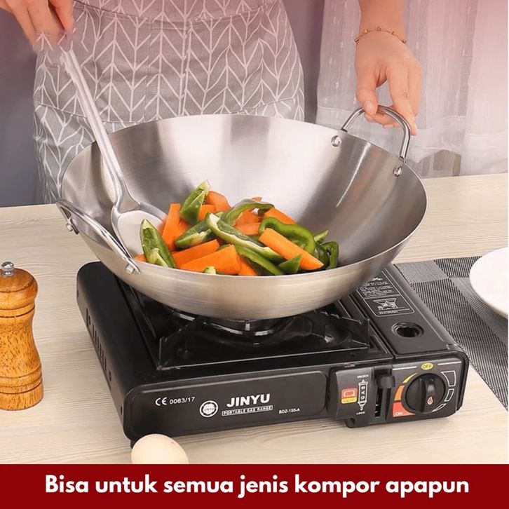 [Mall] Wajan Stainless 555 Tebal Kuali Premium dengan Pegangan Stainless Steel Kuali Besar Katel Anti Lengket