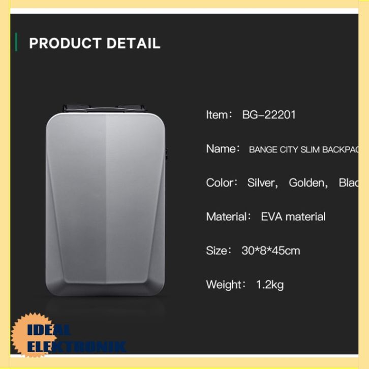 Tas Bange Bag Slim Backpack Pria Cowok Kerja Kantor Laptop 15.6 Ipad 7.9 Hardcase USB TSA