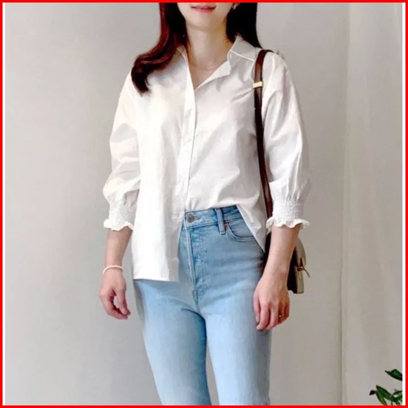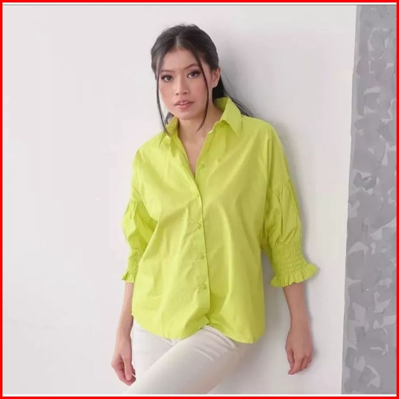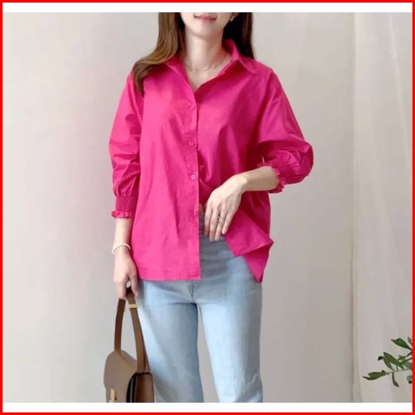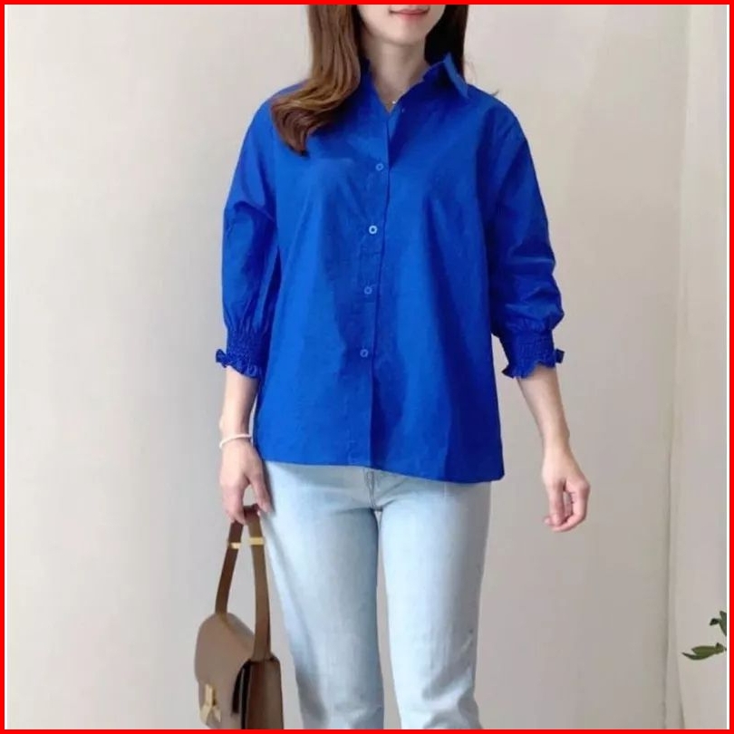 Ootd X Selena - Kemeja Atasan Wanita Polos Lengan Karet Simple