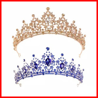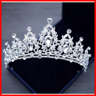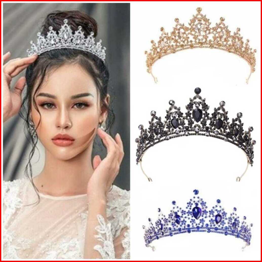 Mahkota Pengantin Elegan - Mahkota Pesta Tiara Silver Hitam Biru - Aksesoris Rambut Pengantin Anak Berlian