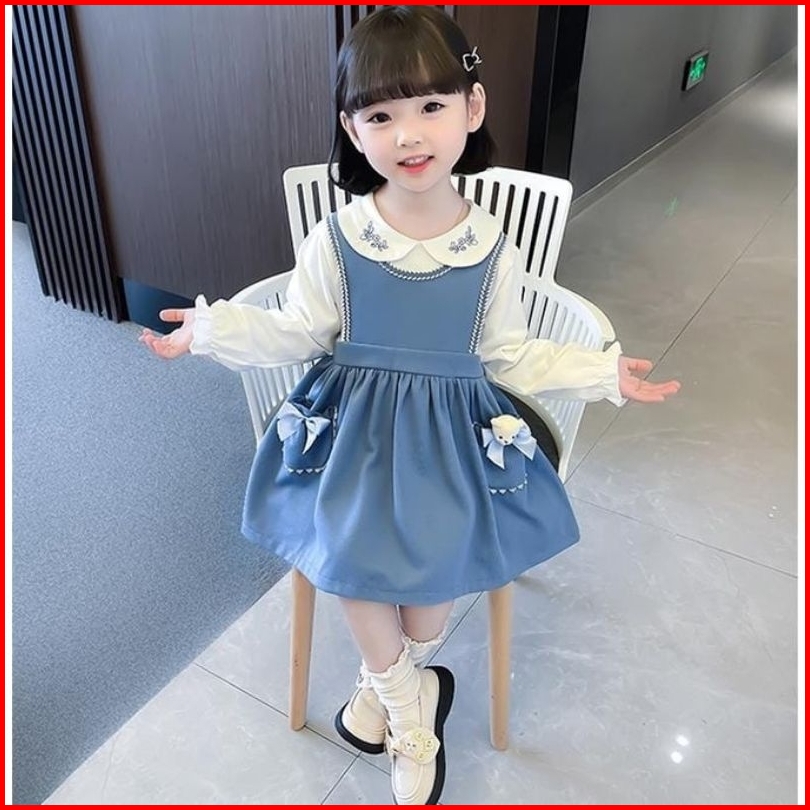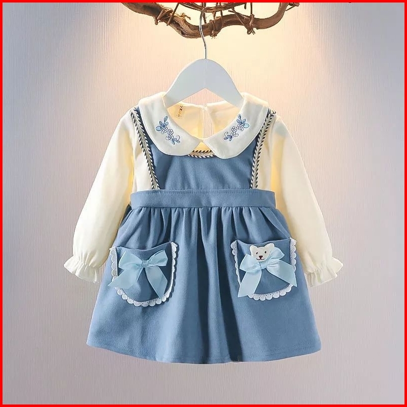 Dress Import Anak Perempuan Dress Anak Kantong Boneka Pita Lucu