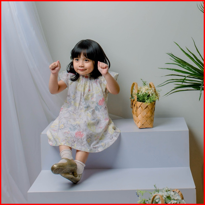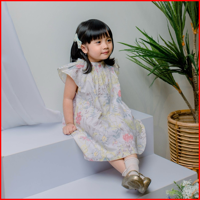 1-4 Tahun Gaia-dress Anak Smocked Dress Smock Anak Perempuan Dress Casual Anak Dress Korea Anak Perempuan Dress Natal An