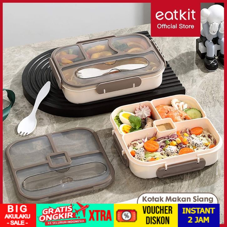 Eatkit kotak makan siang empat kompartemenkotak makan 4 sekat lunch box aesthetic penyimpanan kulkas pemanas microwave