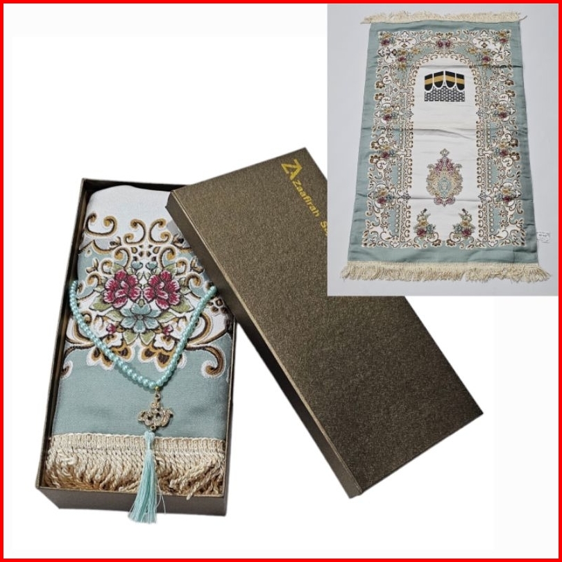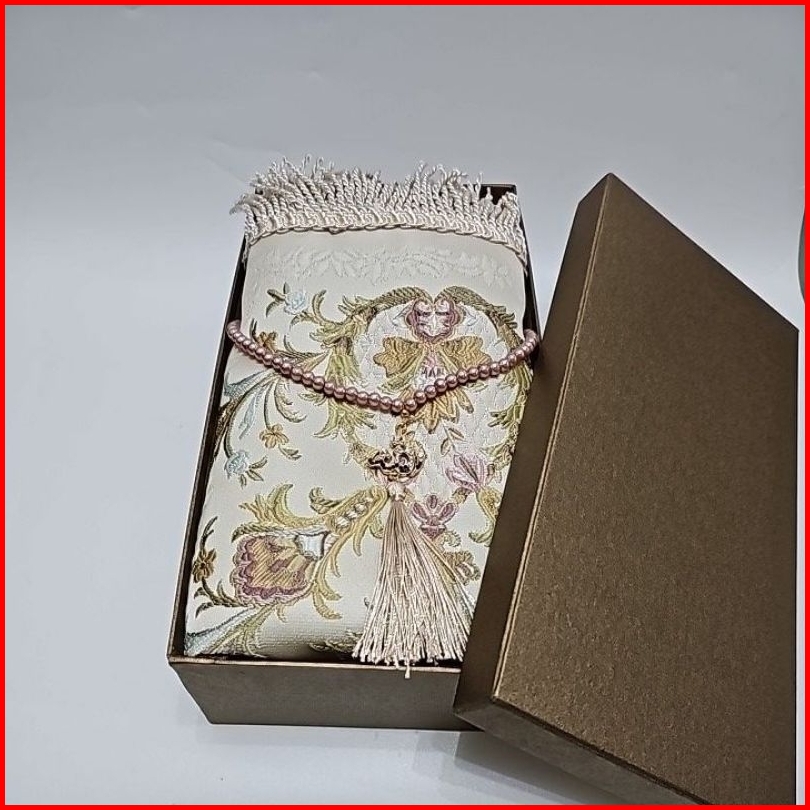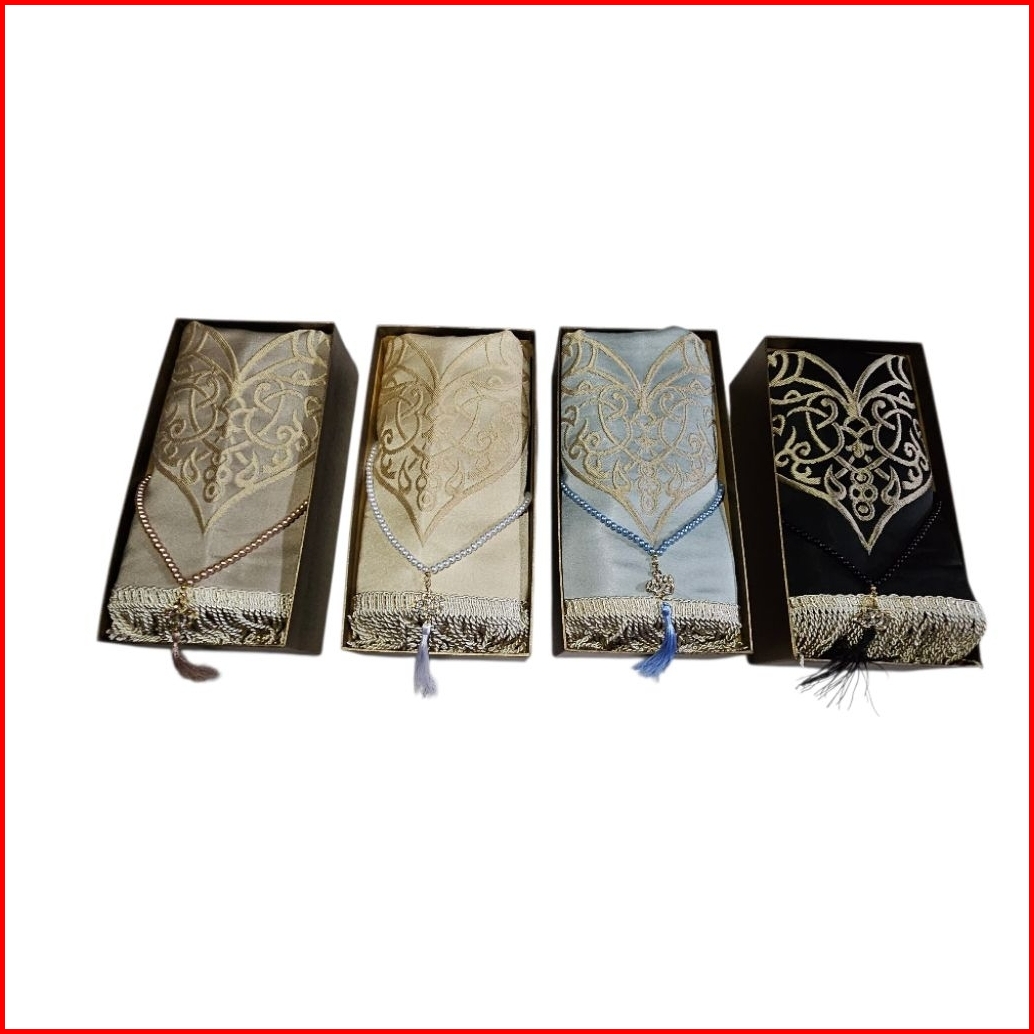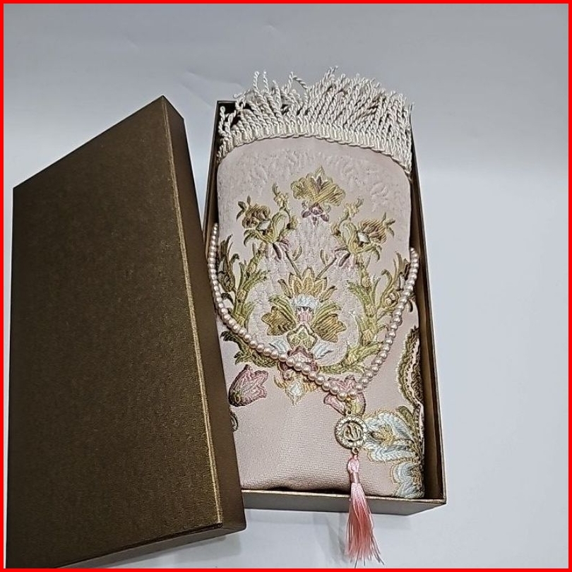 Sajadah Mahar Royal Premium Bordir Satu Set Dengan Tasbih Mutiara Lafaz Allah Kado Pernikahan Hampers