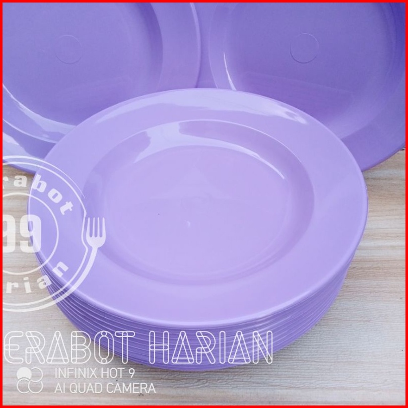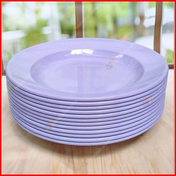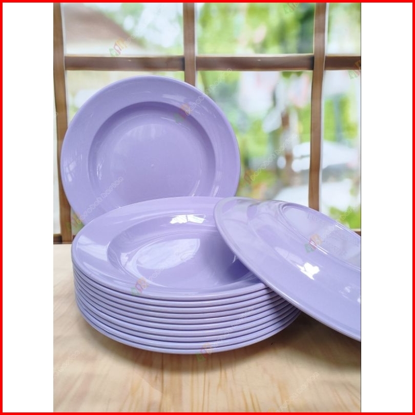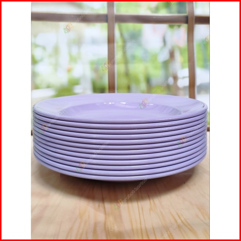 12pcs Piring Makan Bulat Ungu Polos 23cm 9inc Melamine Original Diner Ware Mj Food Grade Sni Tebal Kuat Tahan Panas Berk