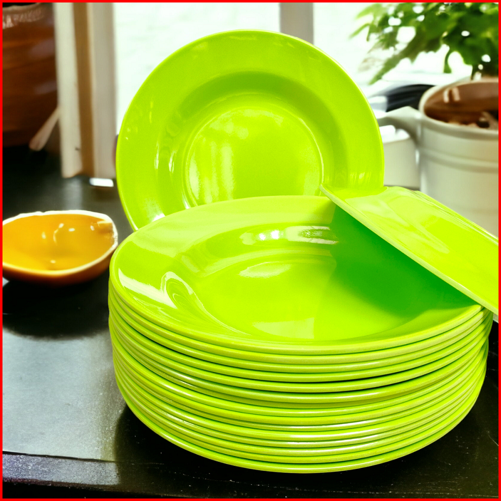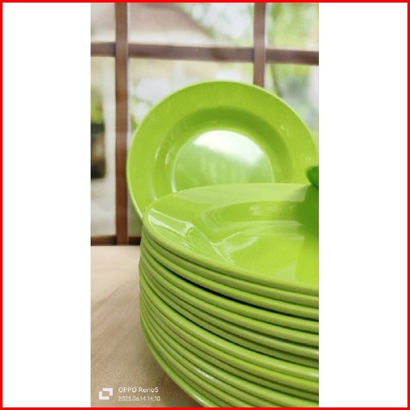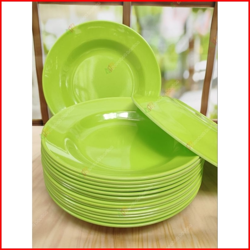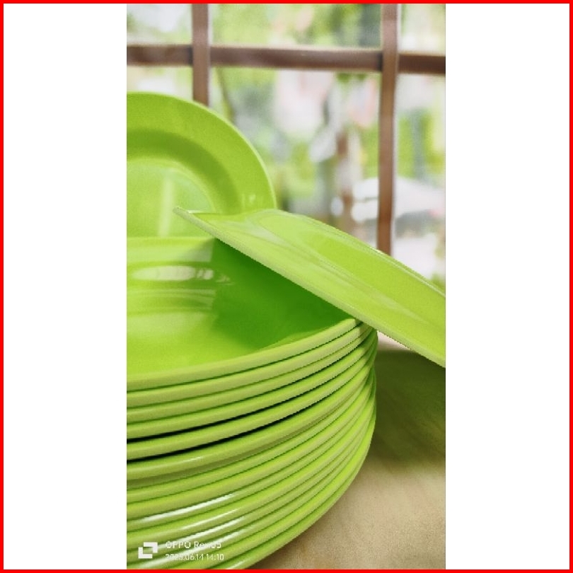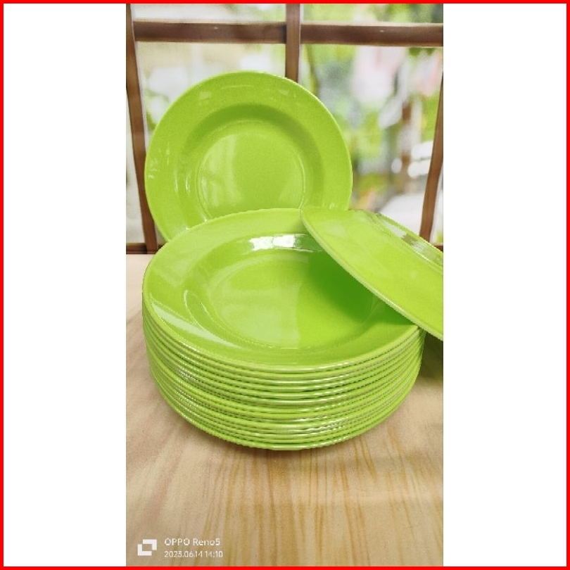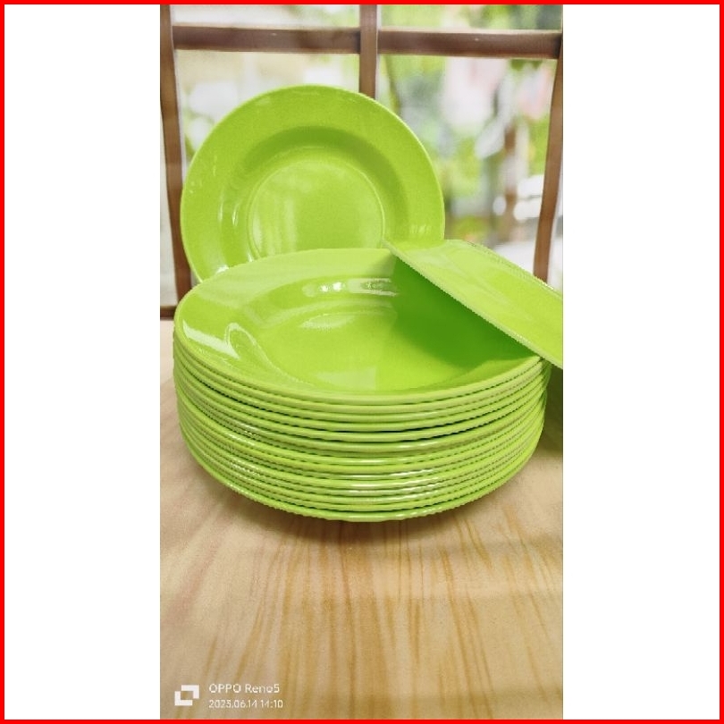 12pcs Piring Makan Bulat 9inch 23cm Hijau Muda Polos Melamine Food Grade Sni Tebal Kuat Tahan Panas Berkuwalitas Terbaik