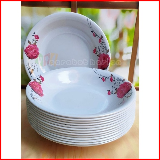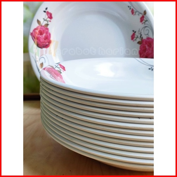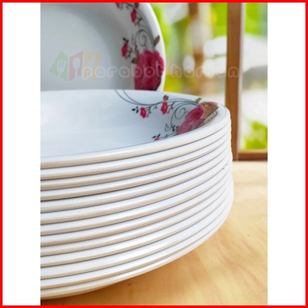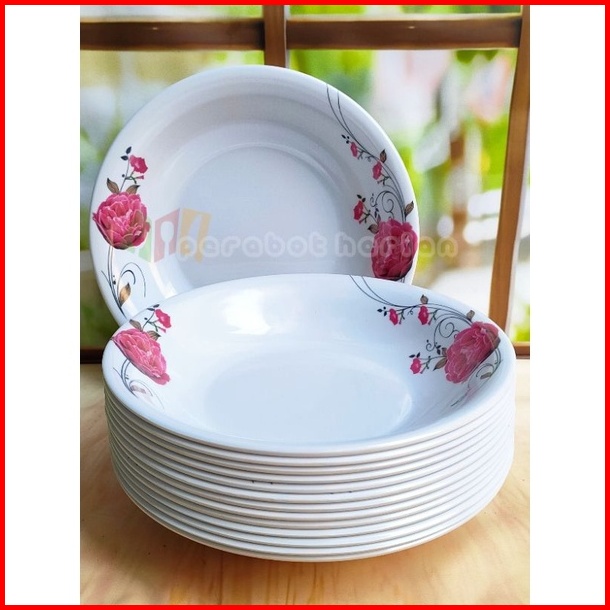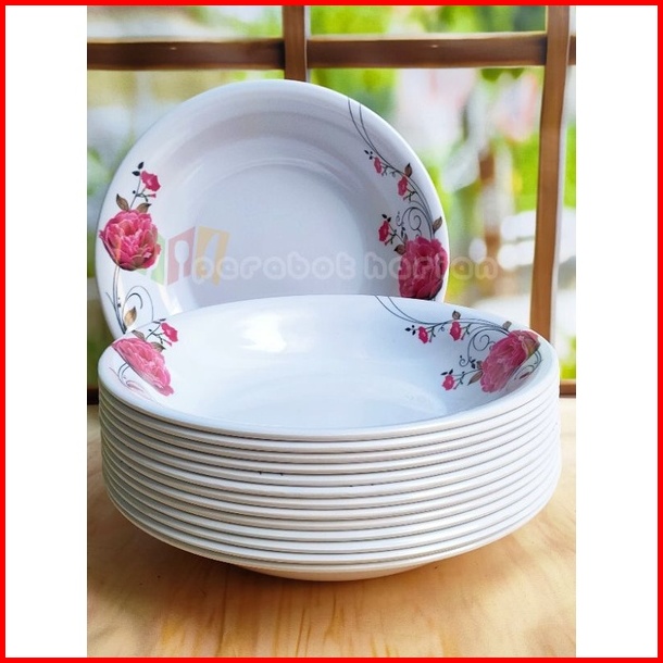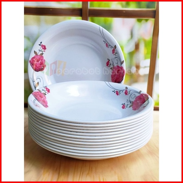 12pcs Piring Makan Bulat Motif Bunga Pink 23cm 9inc Melamine Sni Food Grade Sni Tebal Kuat Tahan Panas Berkuwalitas Terb