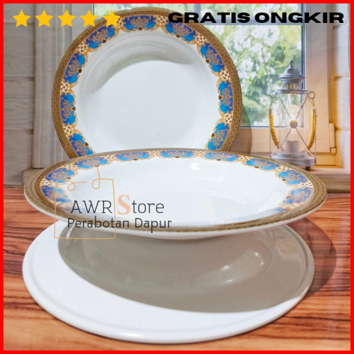 Promo Satu Lusin Piring Melamine Lebar 23.cm Motif Batik List Kualitas Food Grade