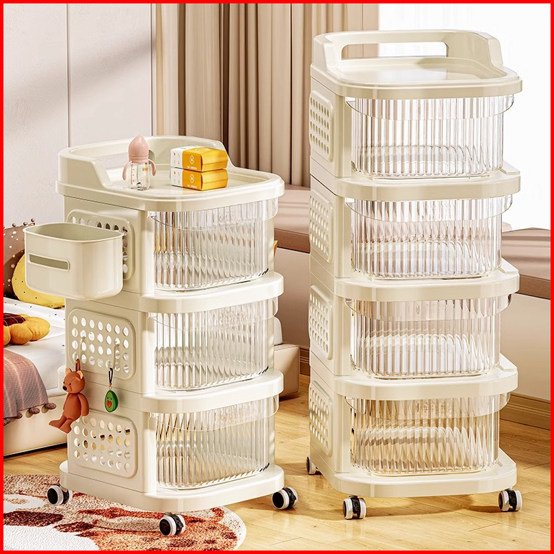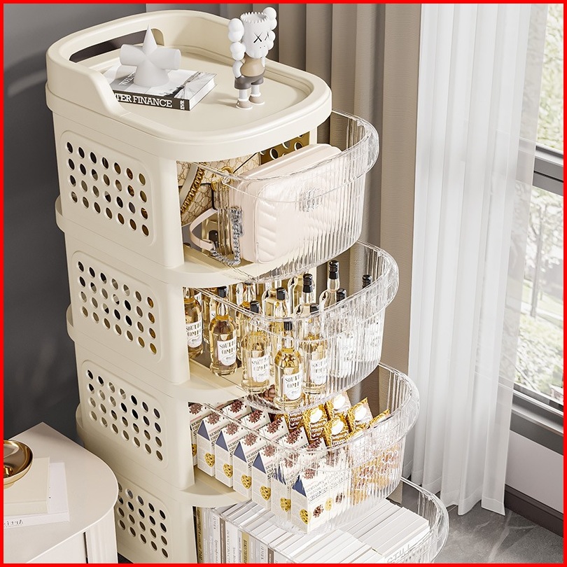 Greenland Rak Susun Snack Transparan 4 Susun Roda 360 Anti Debu Dengan Laci Penutup Hrk525