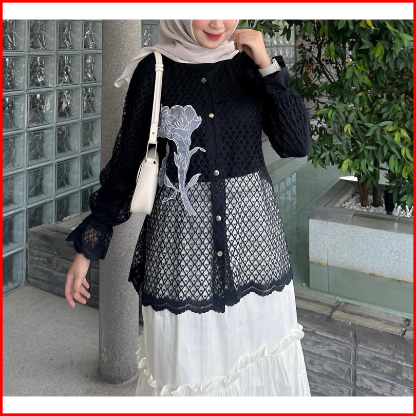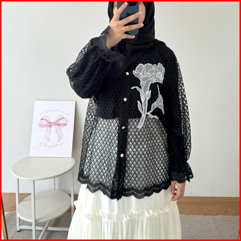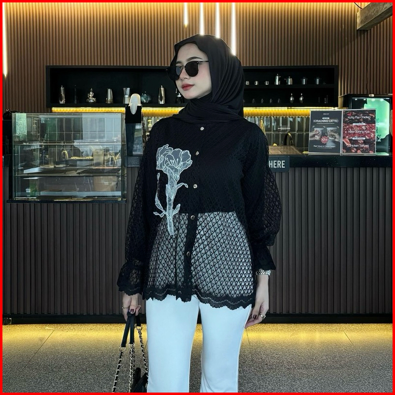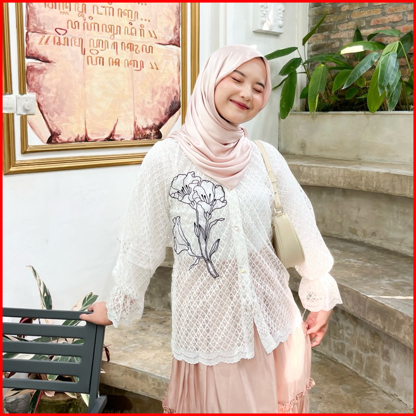Ghia Outer Brukat Blouse Brokat Tile Lace Motif Bunga