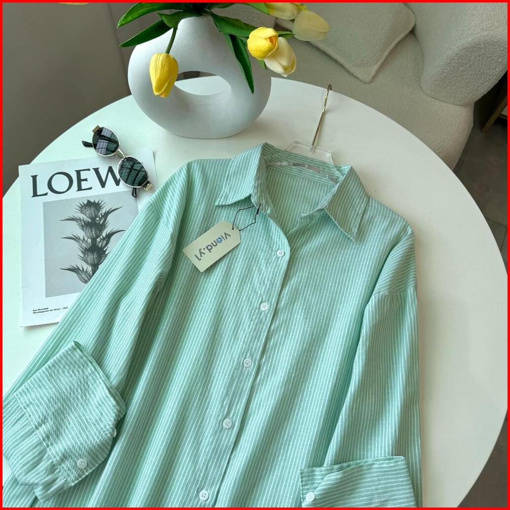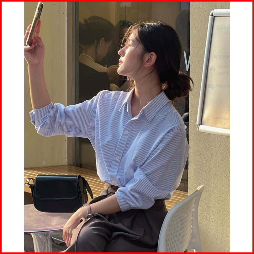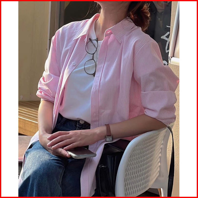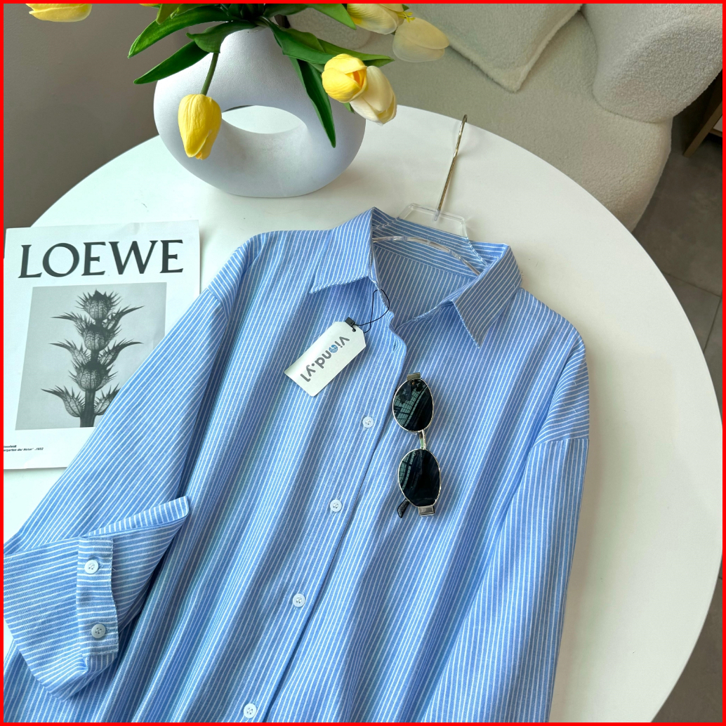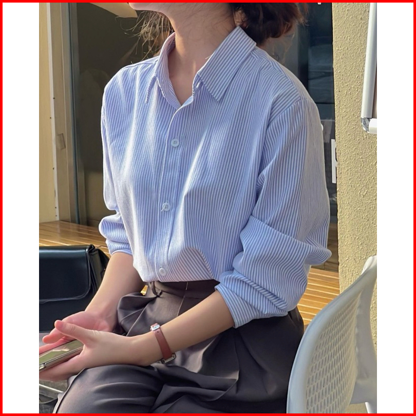 Kemeja Salur Blouse Wanita Kemeja Oversize