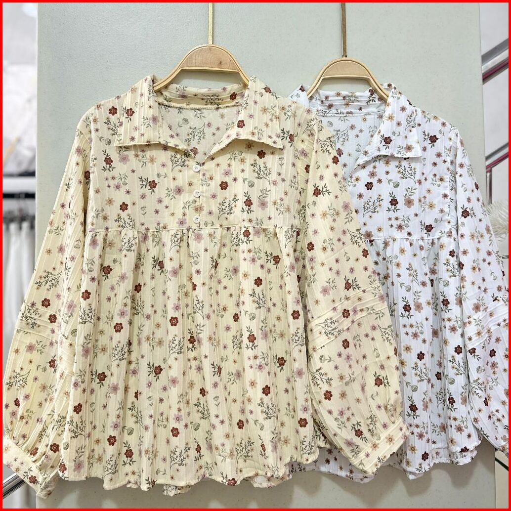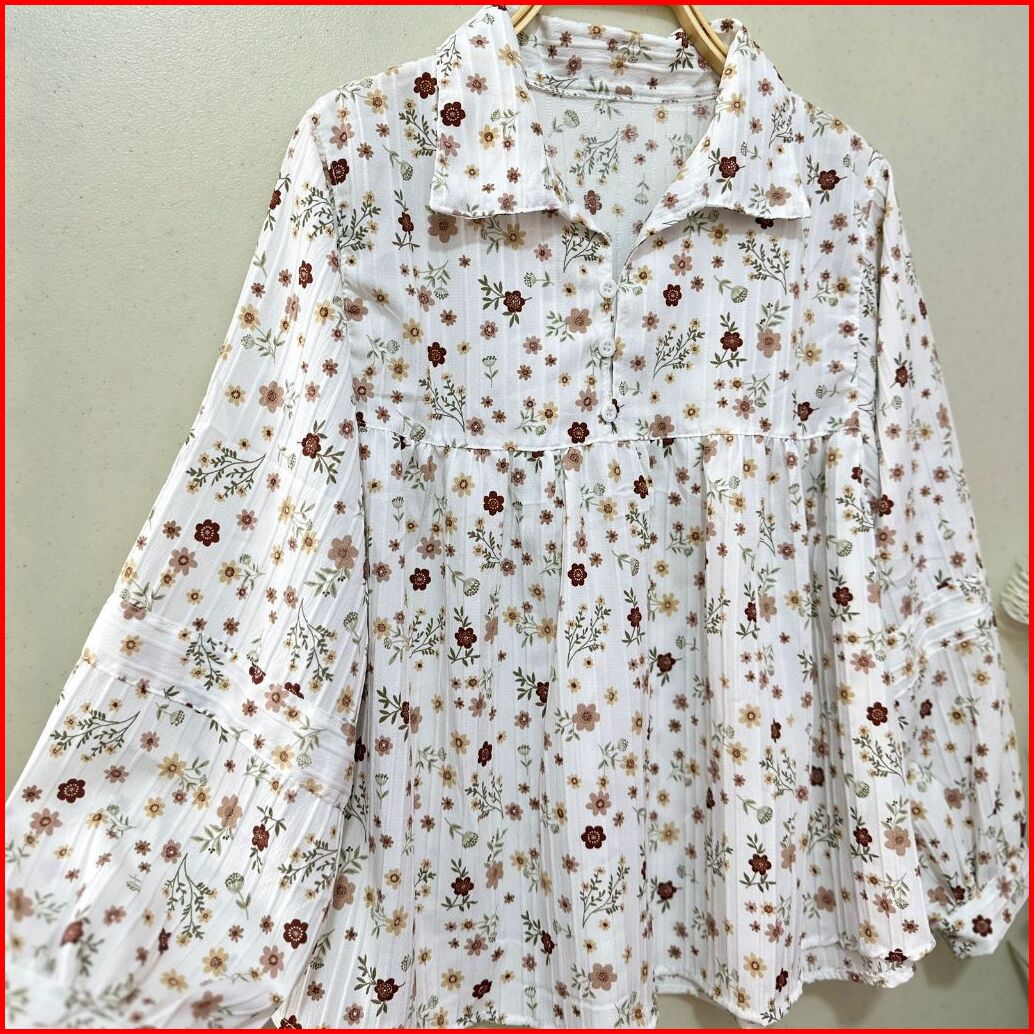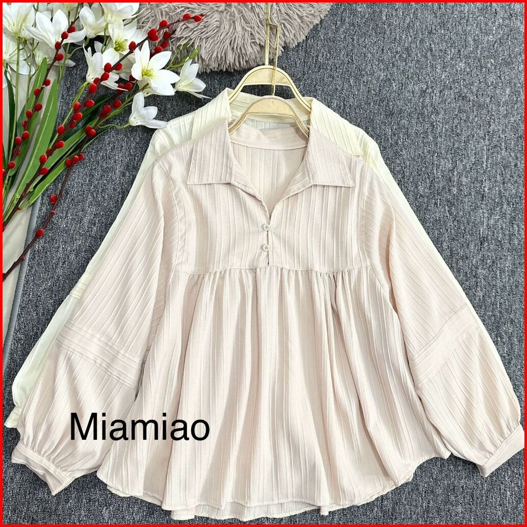 Kemeja Salur Wanita Bahan Katun Ii Atasan Lengan Panjang
