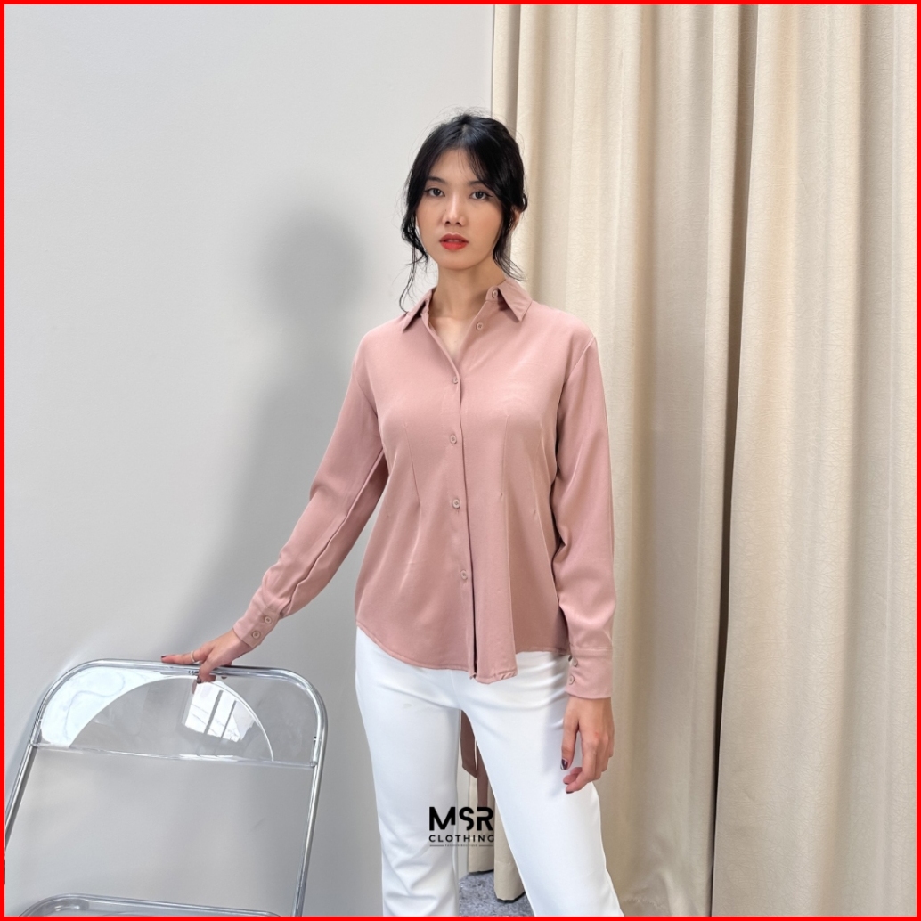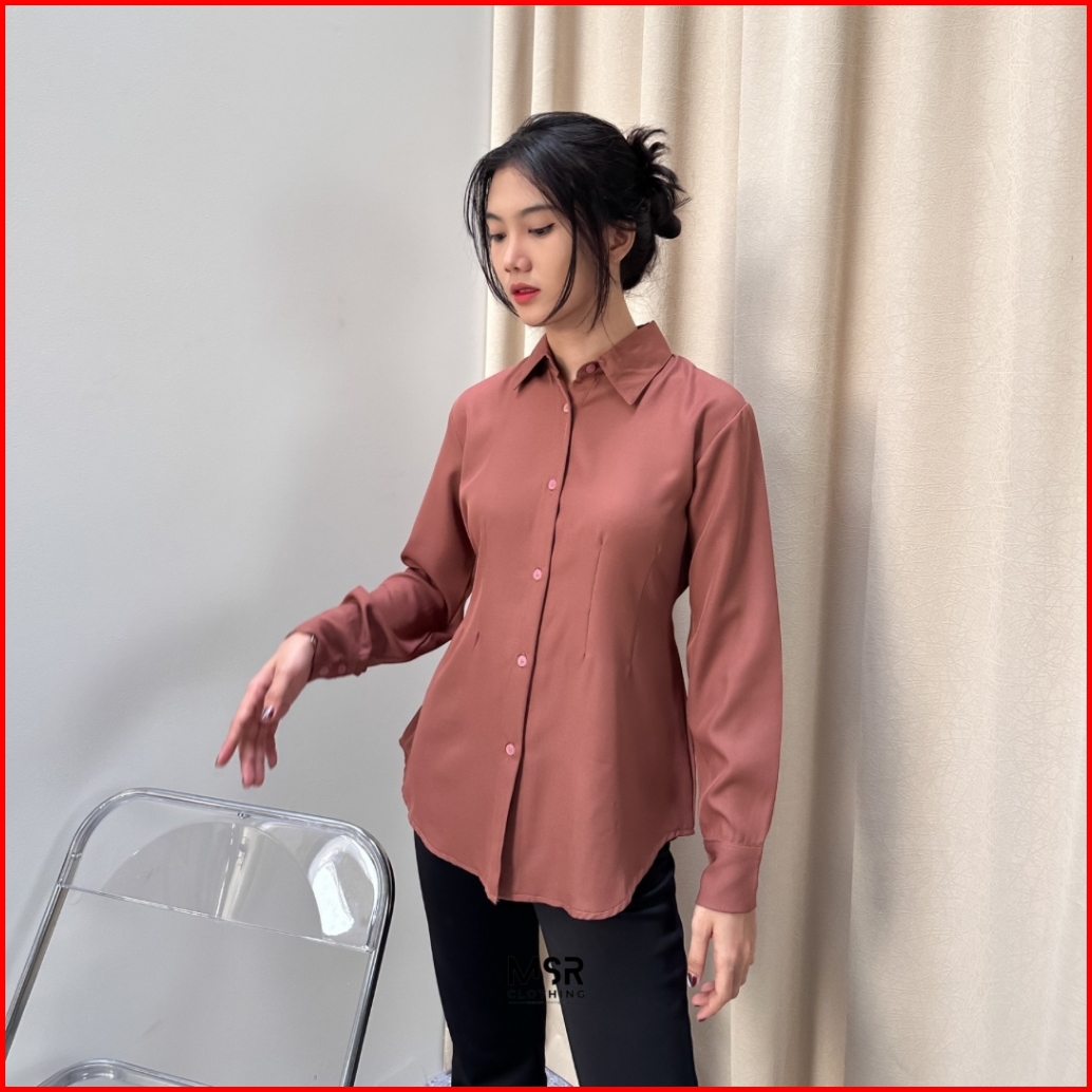 Elsira - Kemeja Wanita Kerja Kantoran Cewek Kuliah Kekinian Blouse Polos Atasan Lengan Panjang
