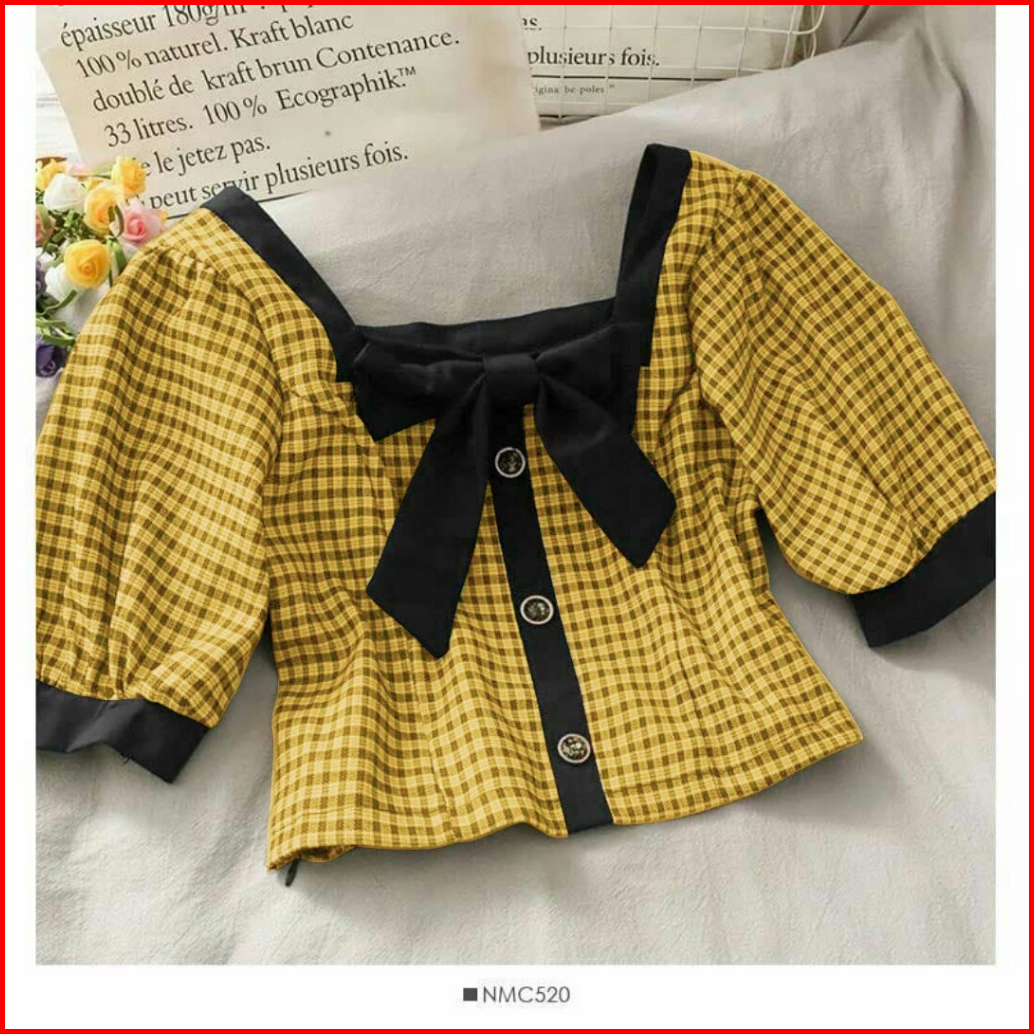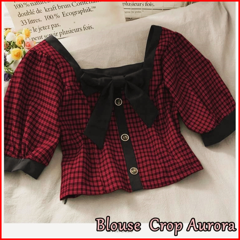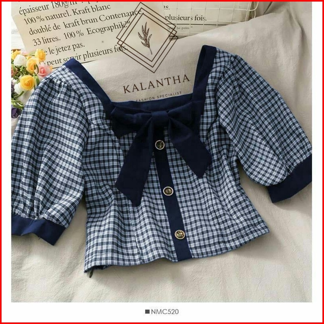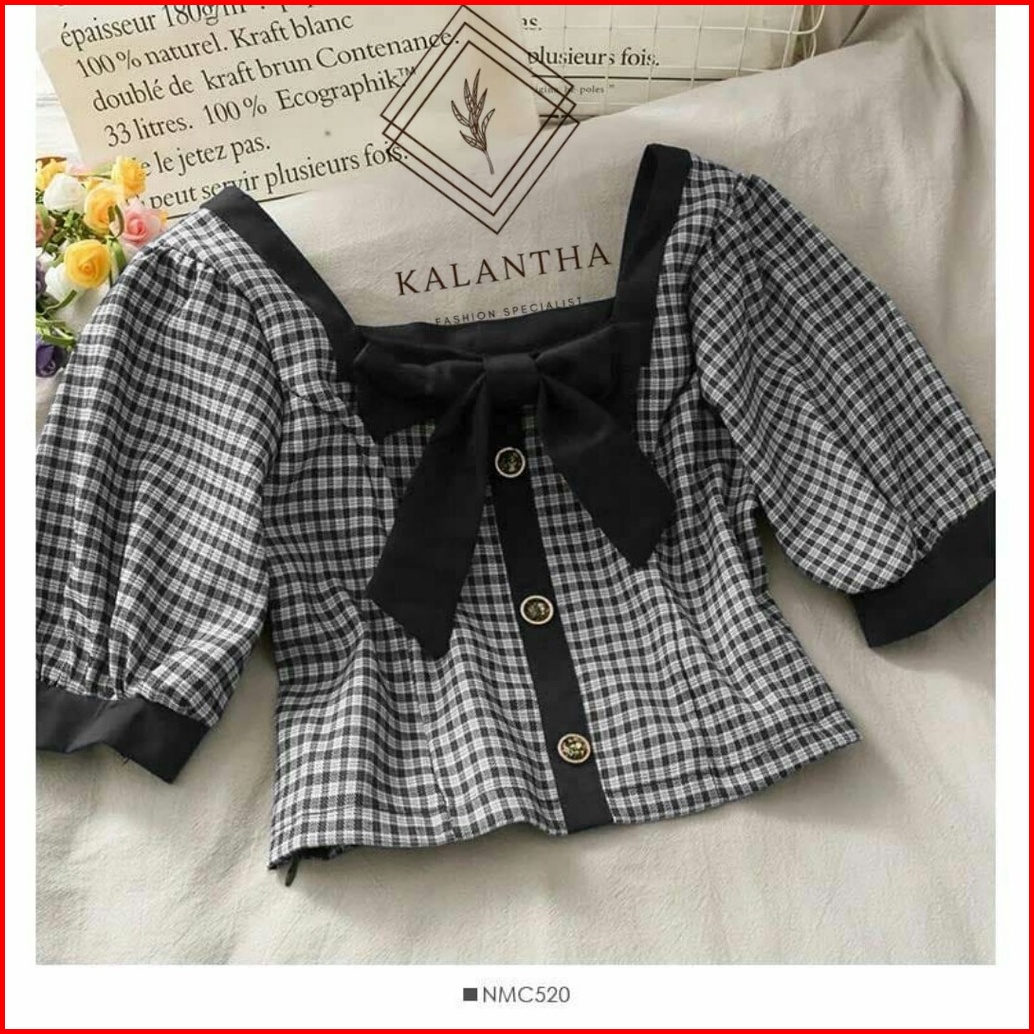 Kalantha Fashion Blouse Aurora Atasan Wanita Kerah Pita Ukuran All Size