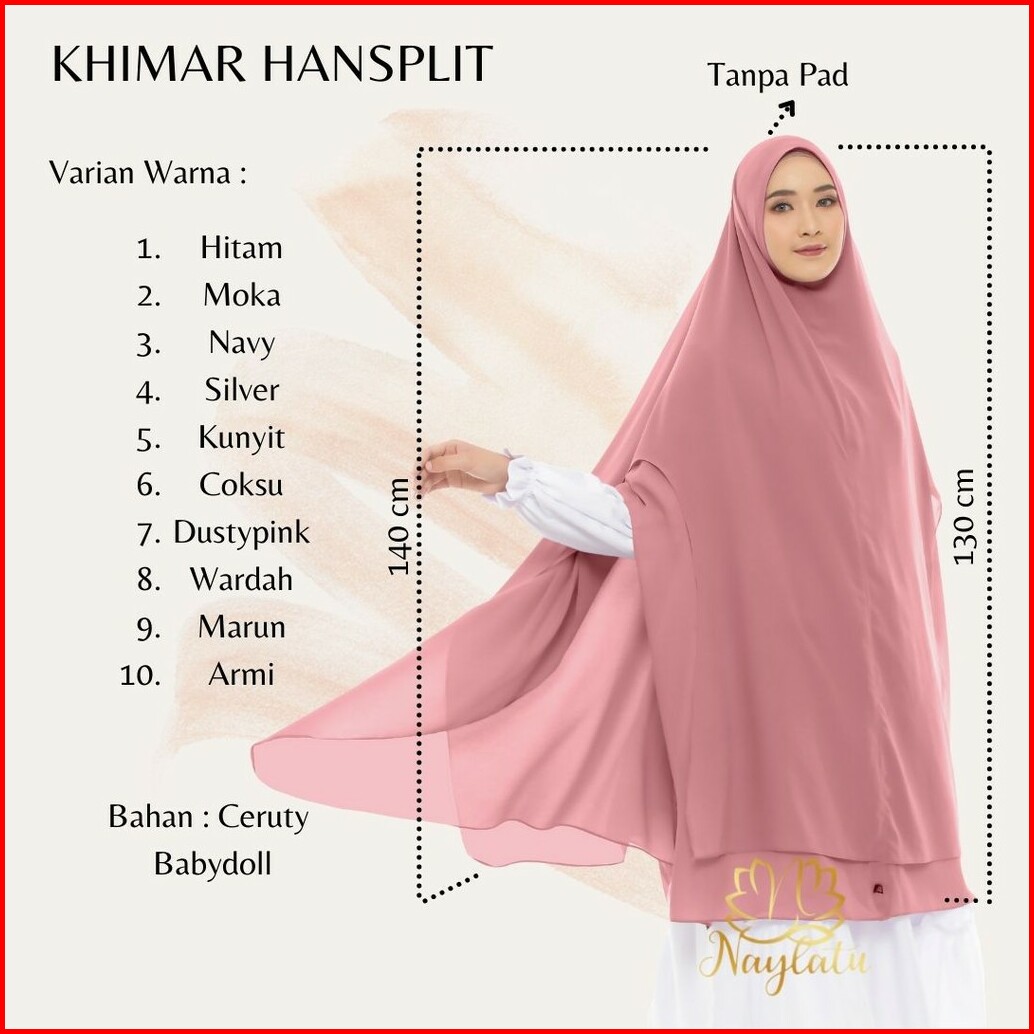 - Khimar Syari Nonpad Jumbo Handsplit Naylatu Free Cadar