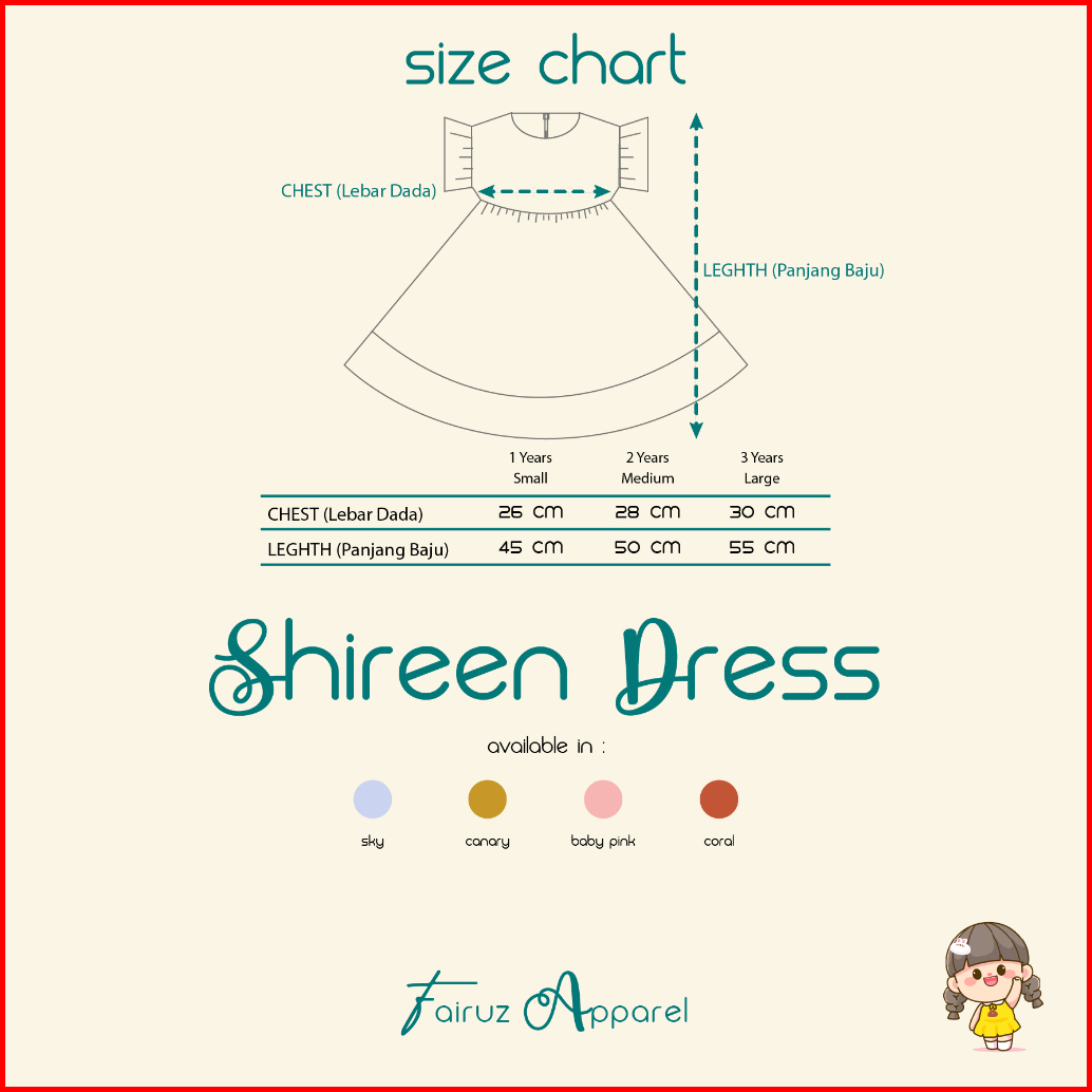 Fairuz Apparel Shireen Dress Baju Dress Gaun Anak Bayi Perempuan Cewek