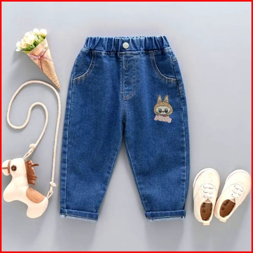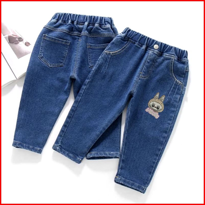 Celana Panjang Jeans Anak Bordir Labubu 2 3 4 5 6 7 Tahun Jins Denim Alabu