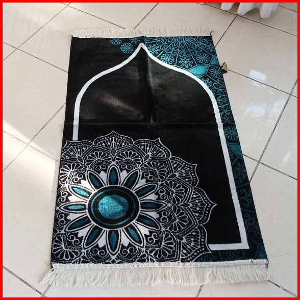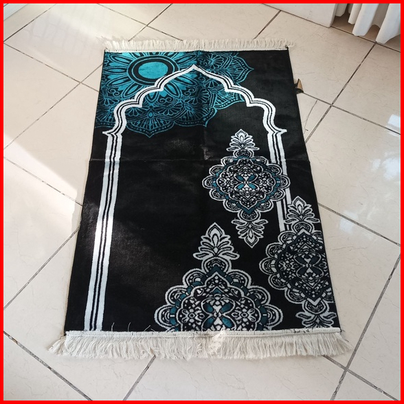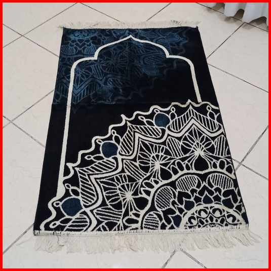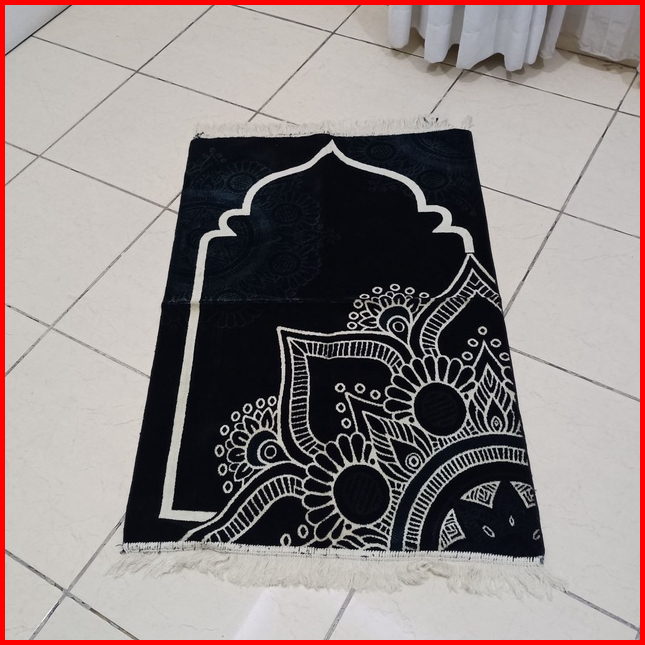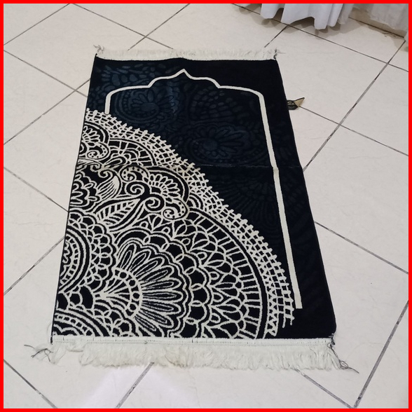 Sajadah Dasar Hitam Saudikadife Floral Rumbai Krem Uk.70x110 Motif Floral