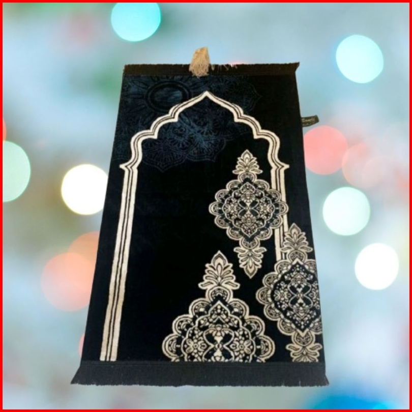 Sajadah Turki Bagus Premium Tebal Lembut Dan Beludru Halus Dasar Hitam Kombinasi Biru Made Inturkiye