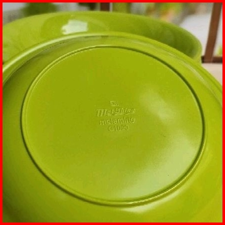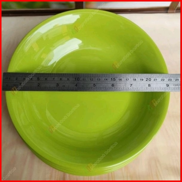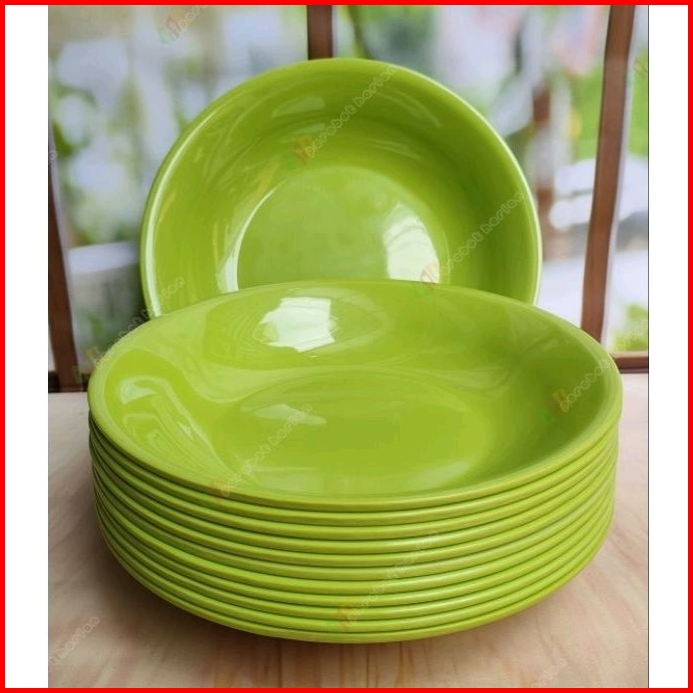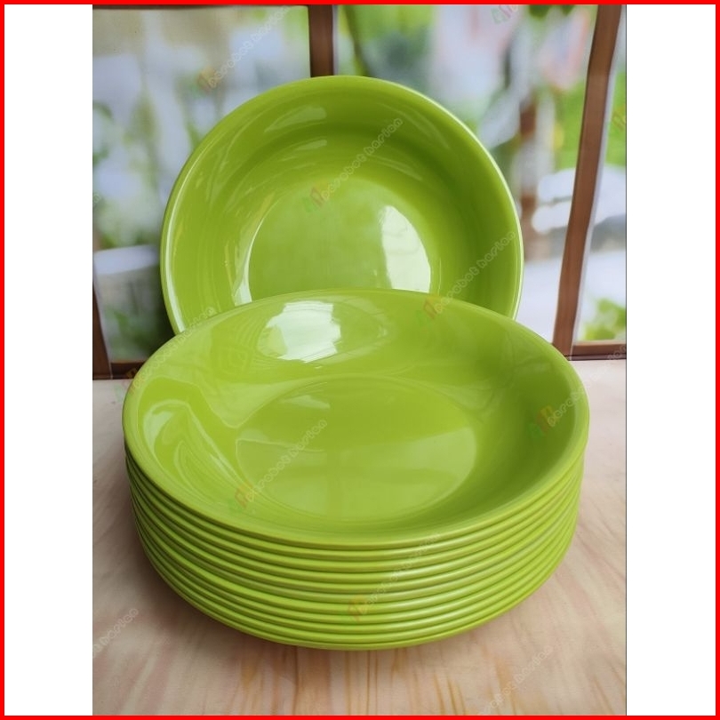 12pcs Piring Makan Bulat Cekung Hijau Polos 23cm 9inc Melamine Original Meishing Food Grade Sni Tebal Kuat Tahan Panas B