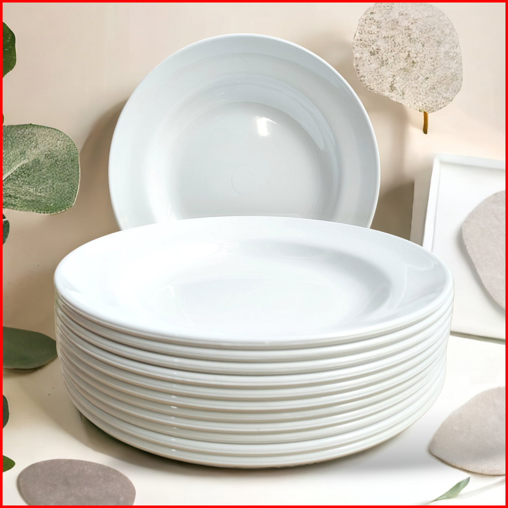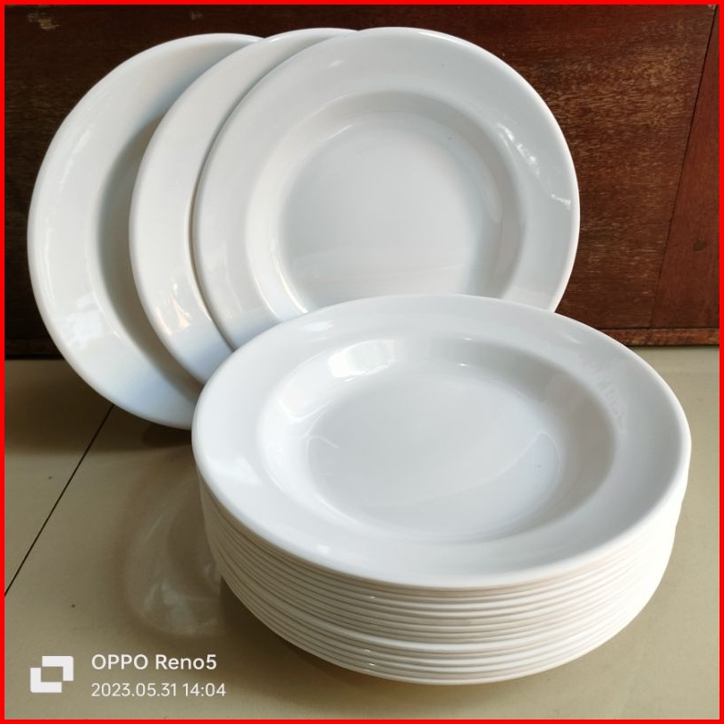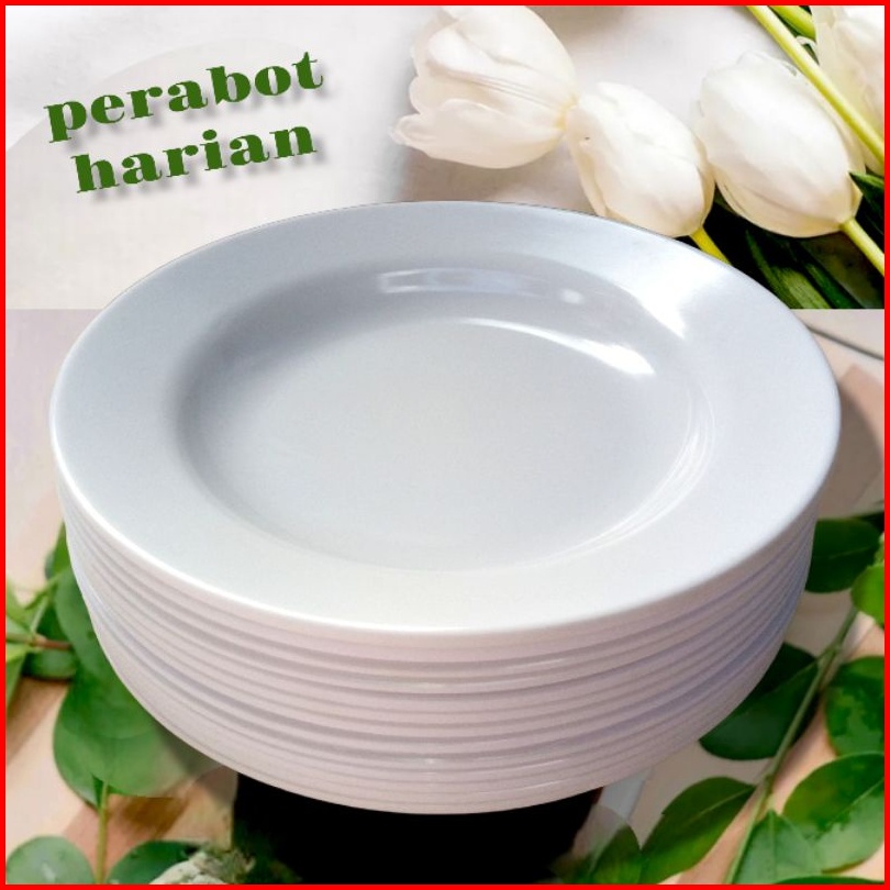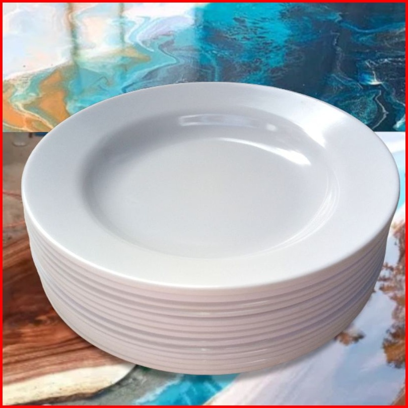 12pcs Piring Makan Bulat Putih Polos 23cm Melamine Food Grade Sni Tebal Kuat Tahan Panas Berkuwalitas Terbaik Termurah T