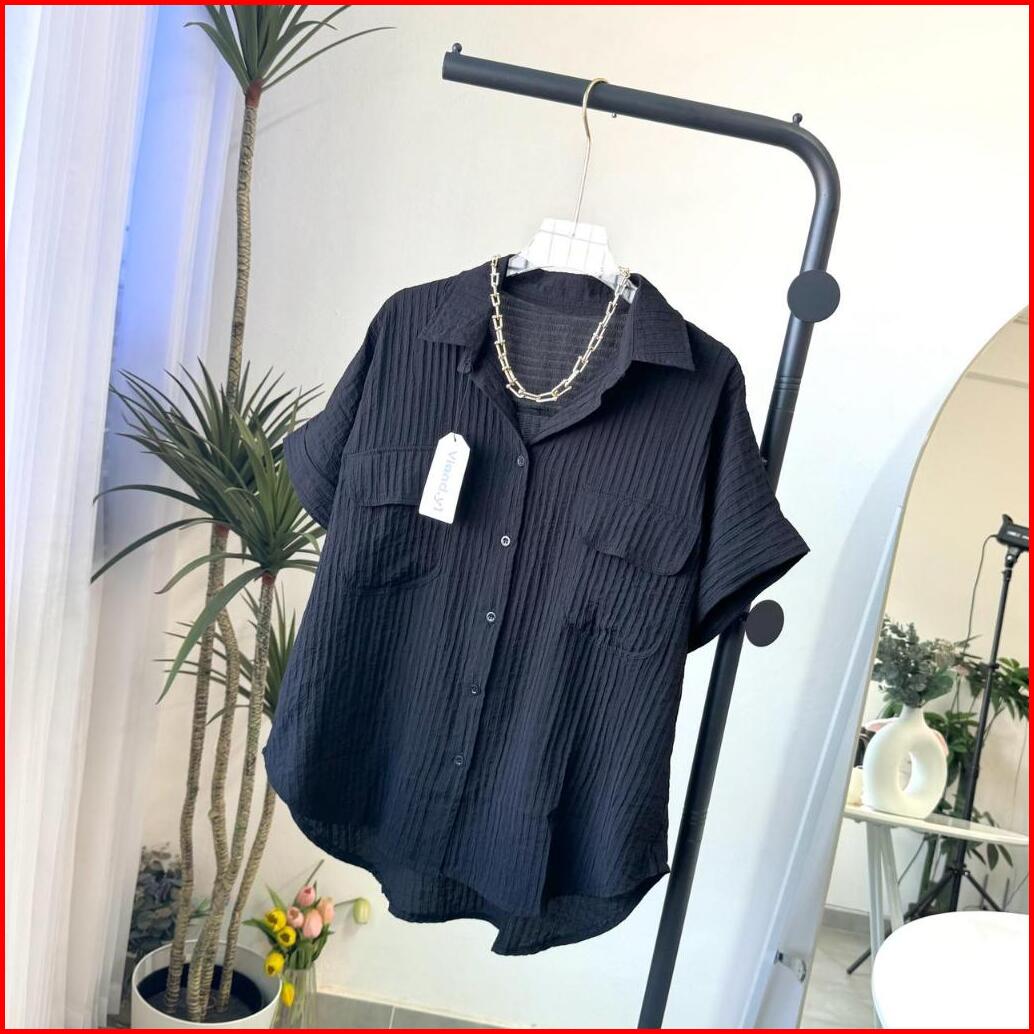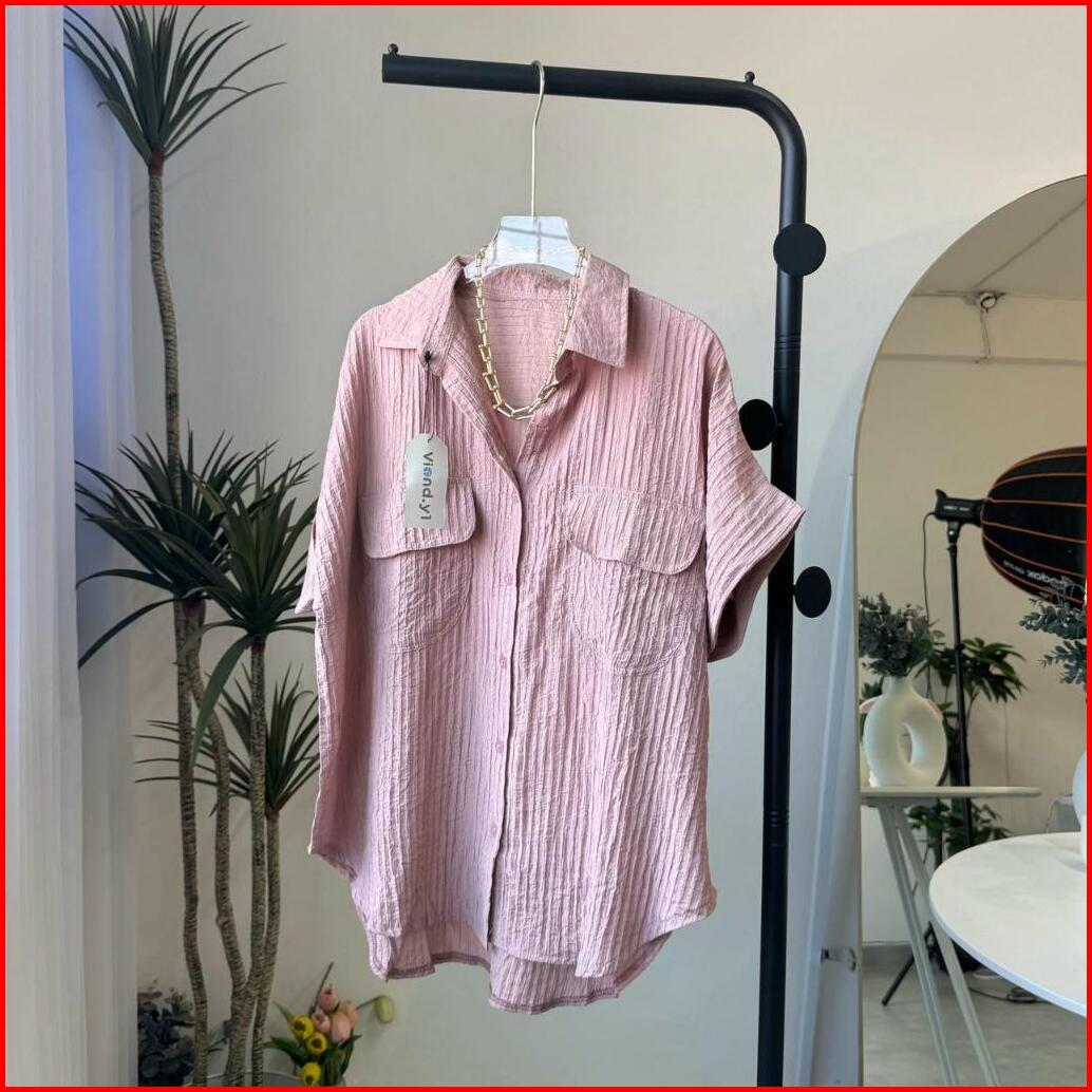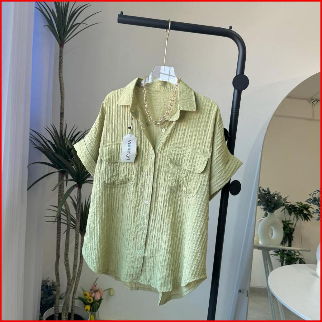 Shirt Top Atasan Wanita Korea Blouse Lengan Pendek Baju Pocket E.105