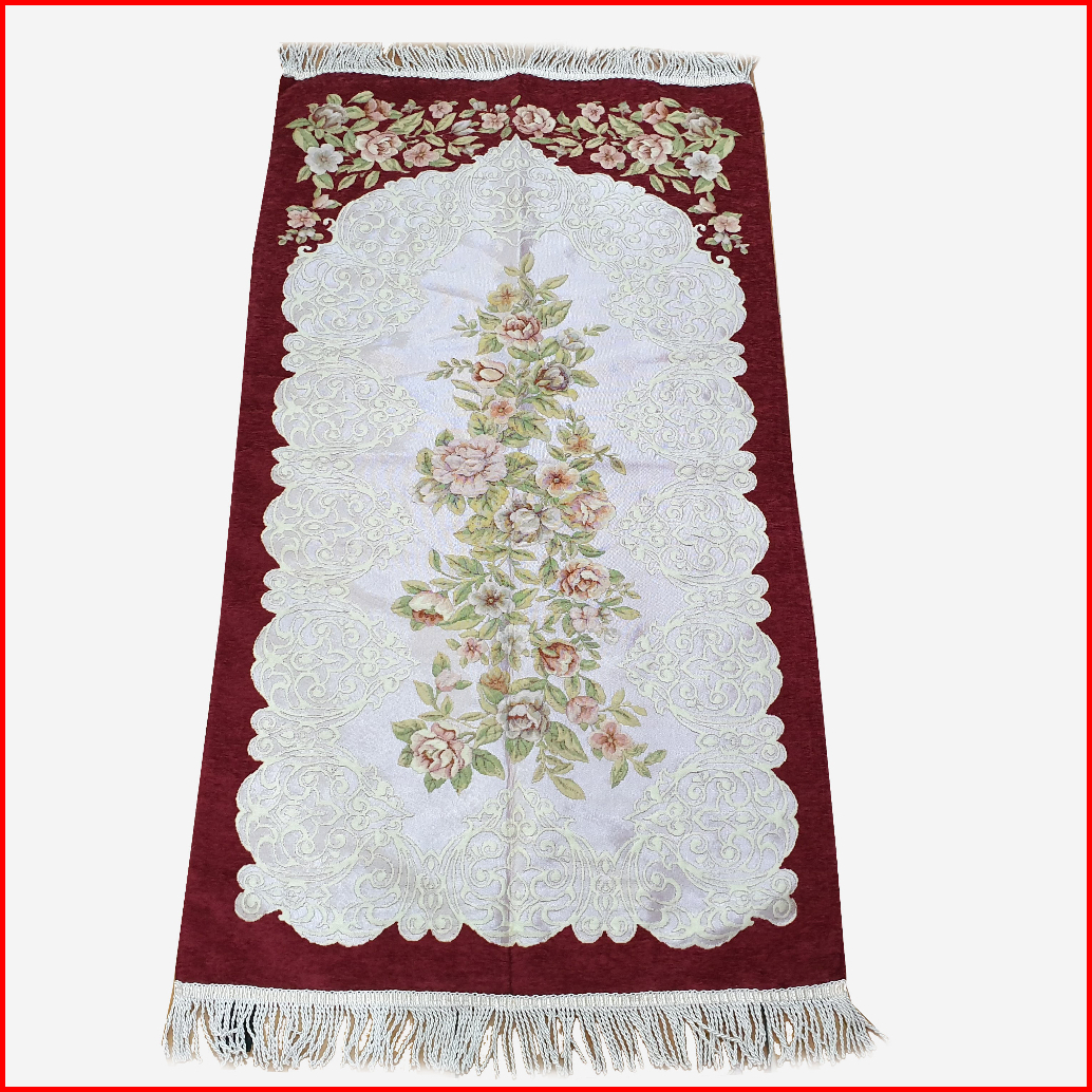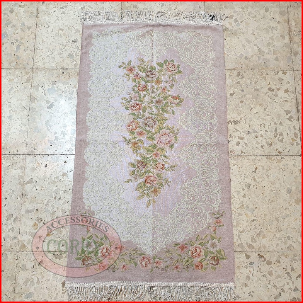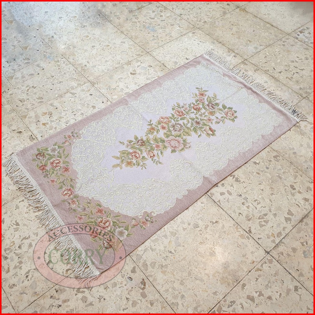 Sajadah Turki Bunga Pink Krem 120 X 70 Cm Tebal Lapis Bordir Premium Rug Pray Turky