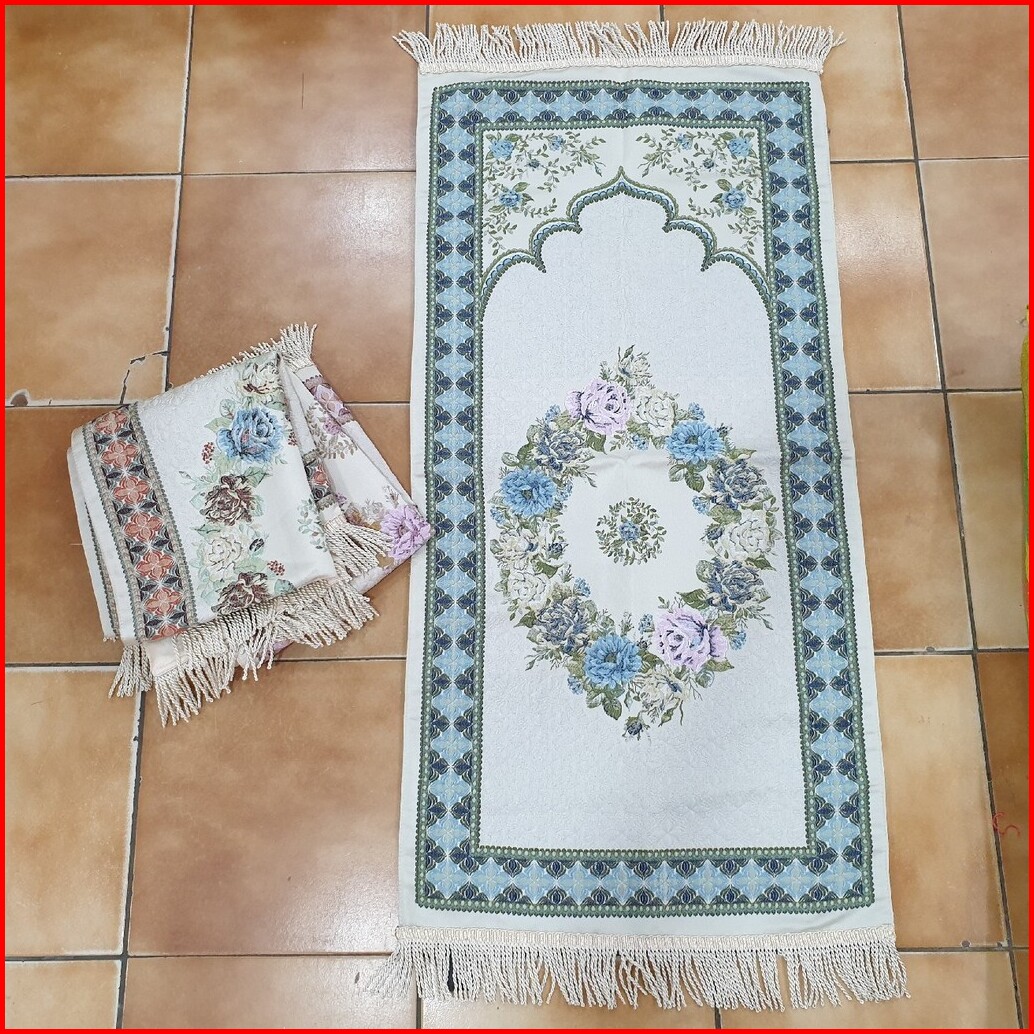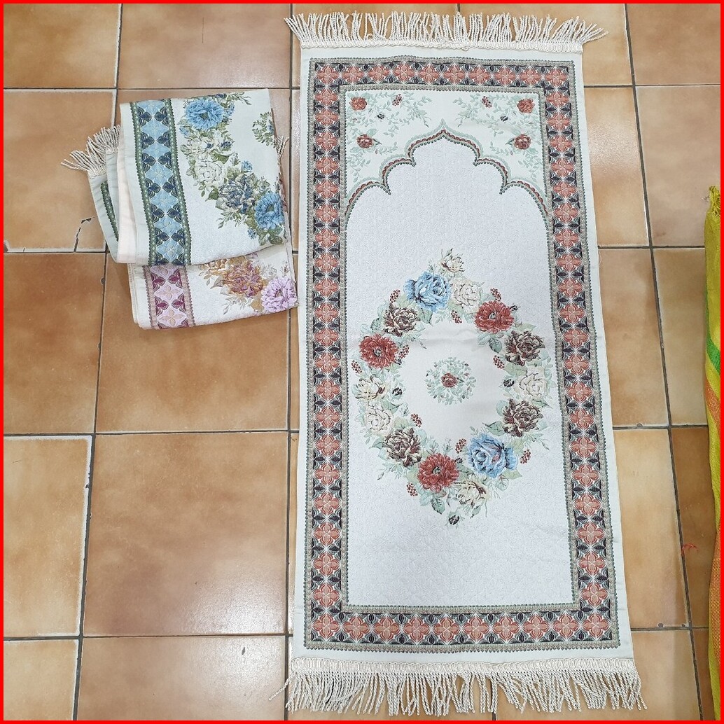 Sajadah Midi Premium Gerbang Bunga Biru Merah Pink 100 X 50 Cm Mekah Turki Turky