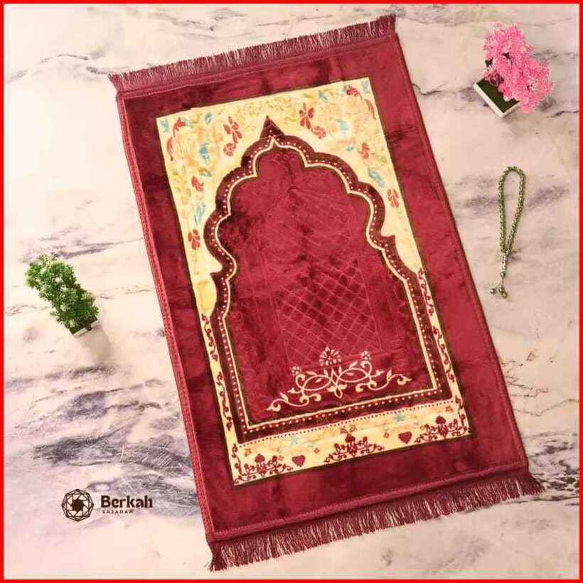Sajadah Turki Kiswah Cream Rumbai Premium Ukuran 70x110 Motif Terbaru