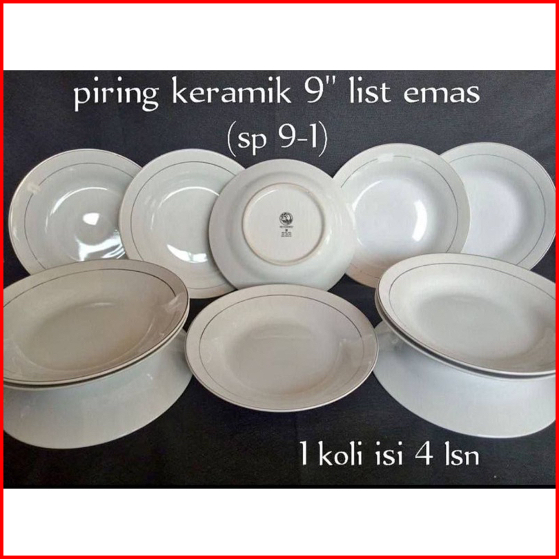 Piring Keramik List 12 Pcs Uk. 9 Inch Tebal