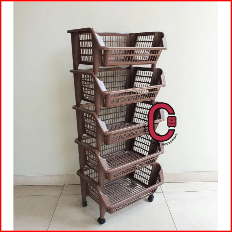 Rak Ciki Salon Serbaguna Keranjang Display Supermarket Rak Warung - Cokelat Susun 5 4 3 - Rak Vamos Hanya Pengiriman Jab
