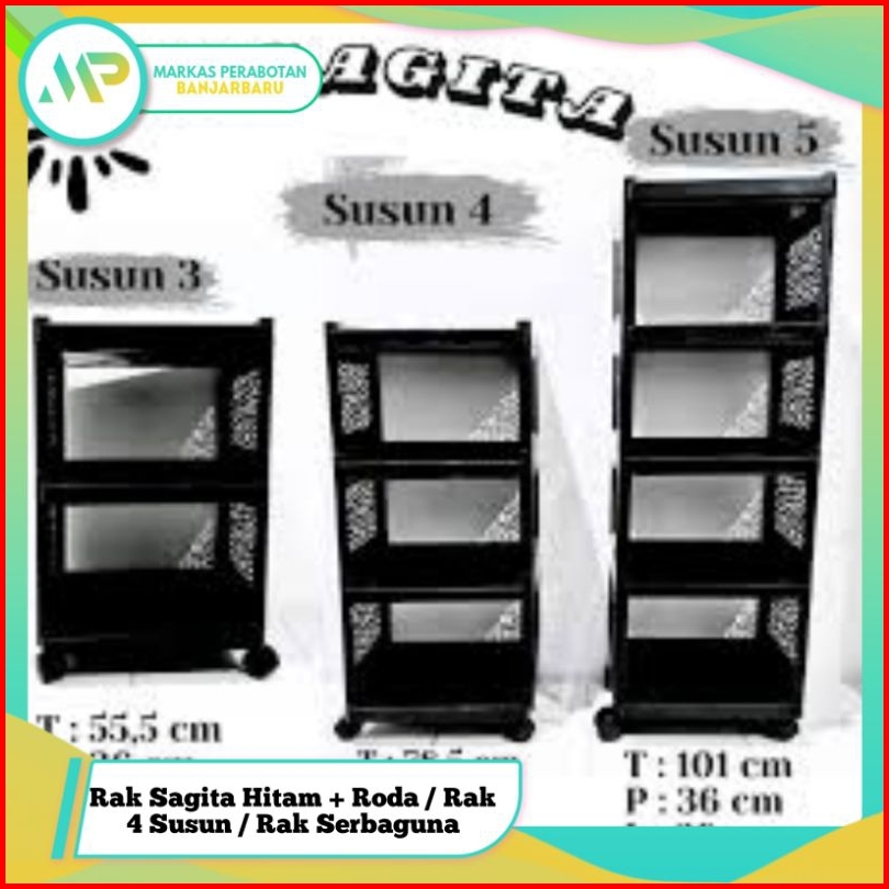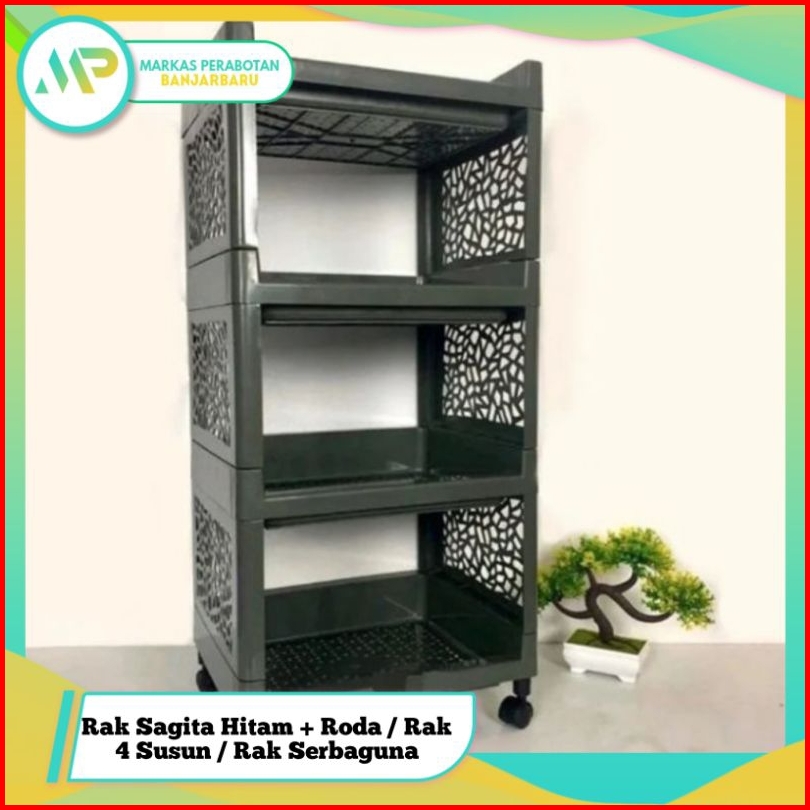 Rak Sagita Hitam Roda Rak 4 Susun Rak Serbaguna