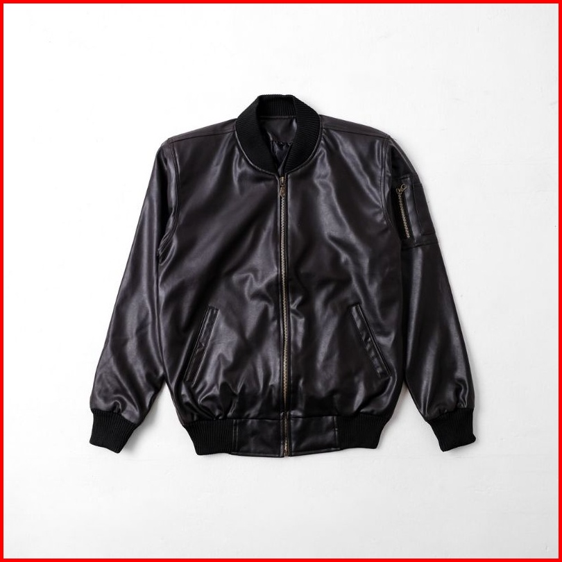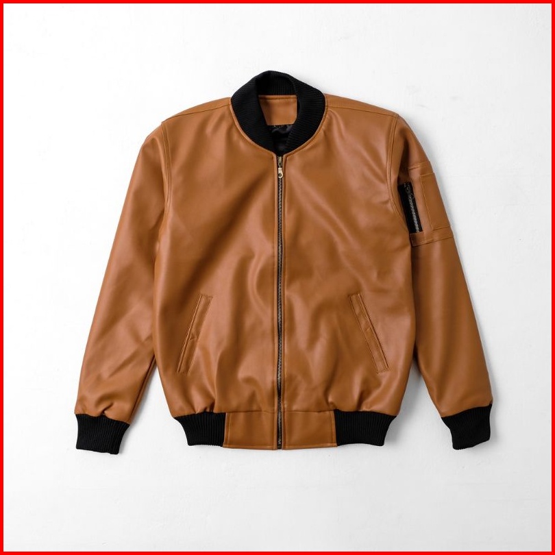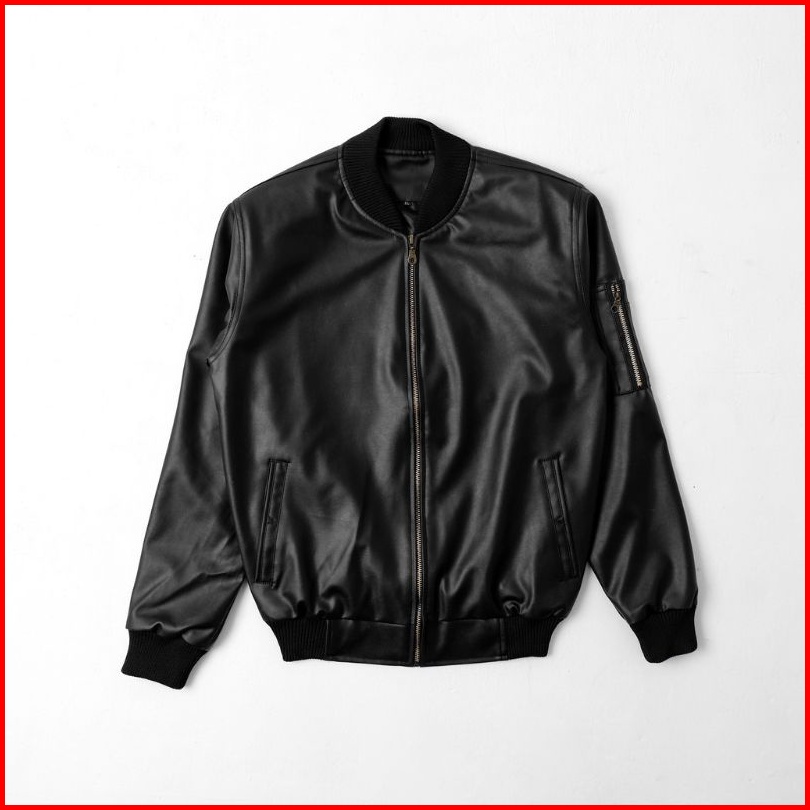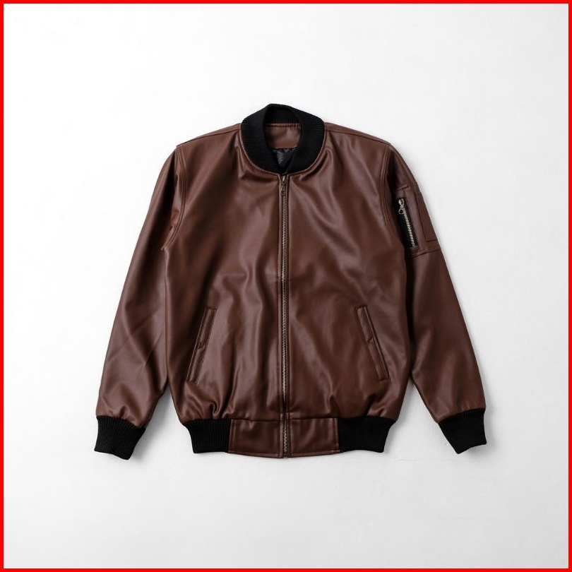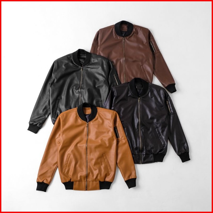 Jaket Bomber Kulit Pria Wanita Simpel Anti Air Cocok Semua Musim