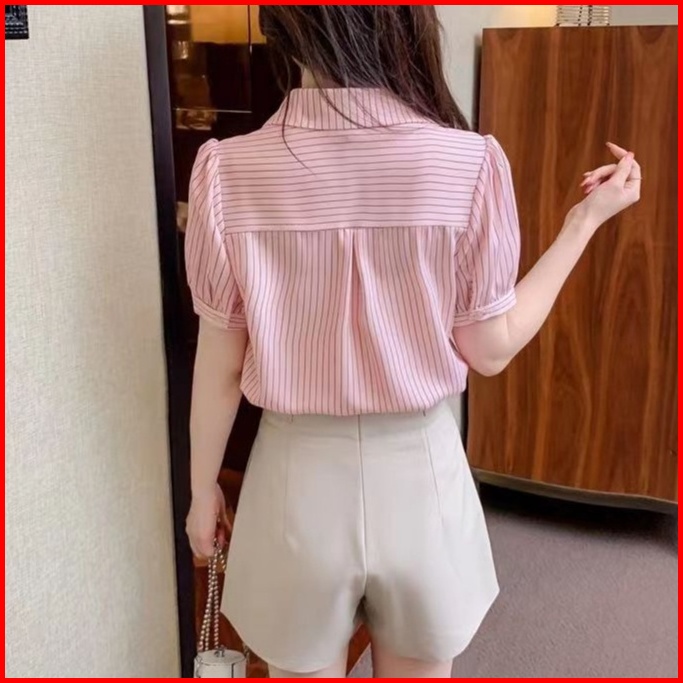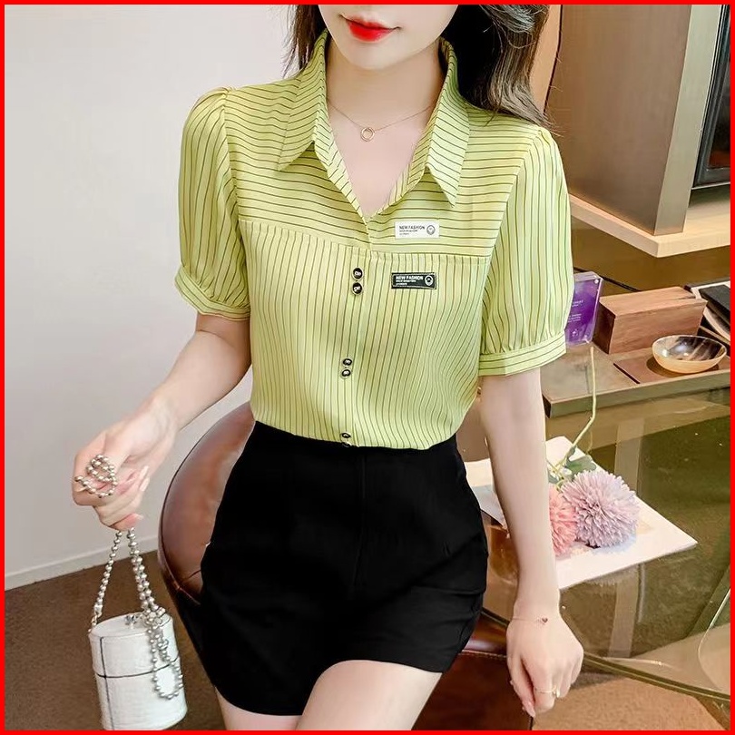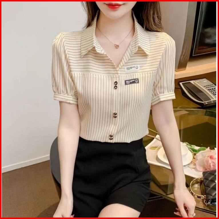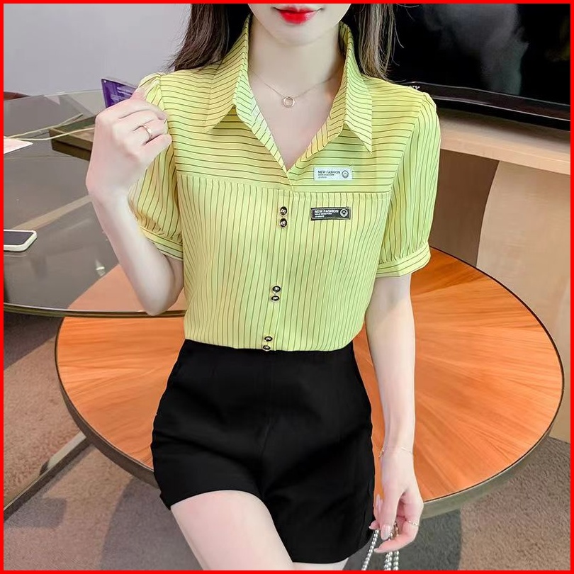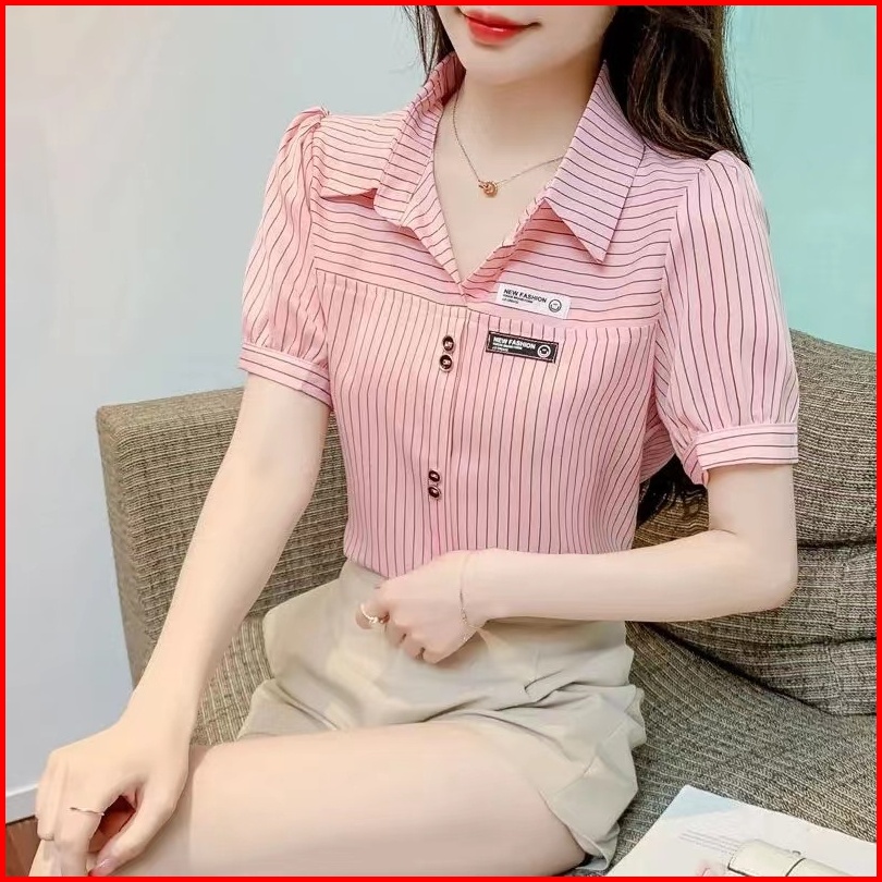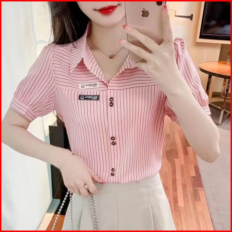 9052-kemeja Kekinian Wanita Kemeja Korean Style Wanita Blouse Kemeja Kaos Lengan Pendek
