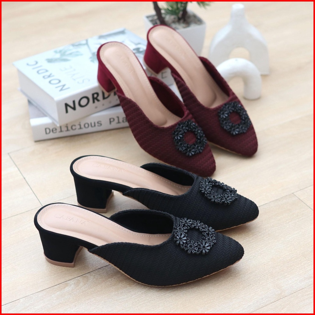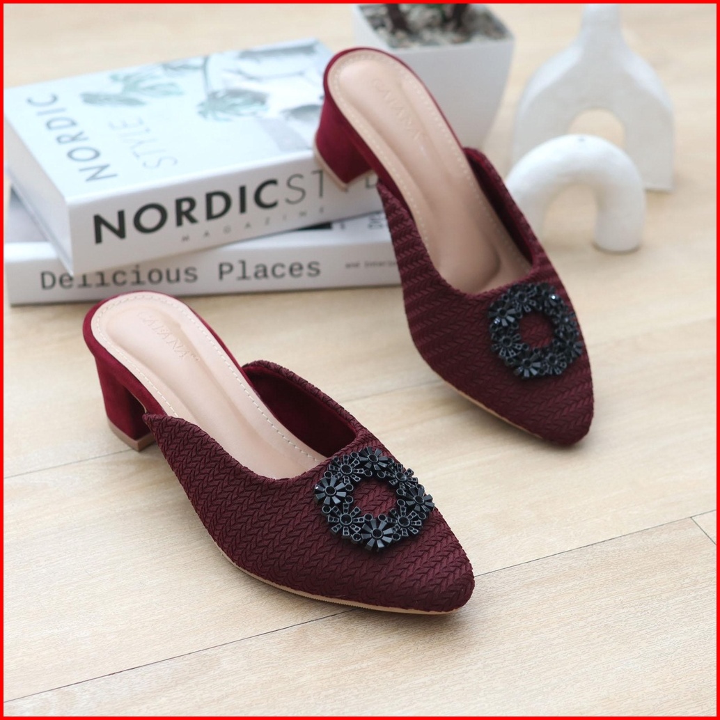 Sandal Hak Tahu Wanita Vinsa Sdh311 Maroon Hitam